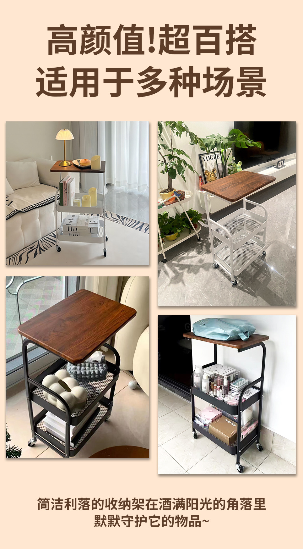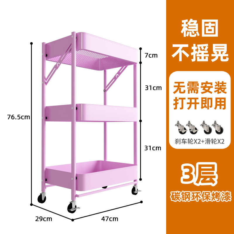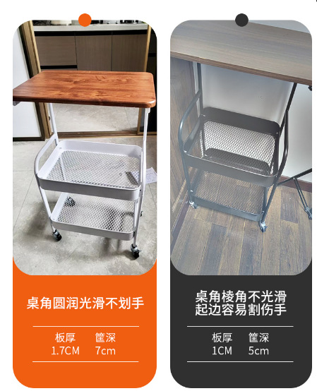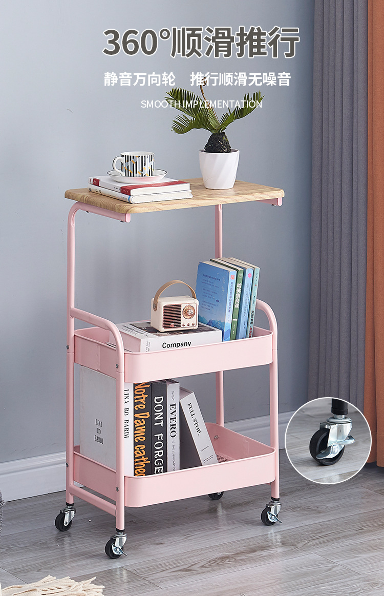 置物架多层收纳架碳钢零食书本储物架客厅厨房带桌板小推车置物架