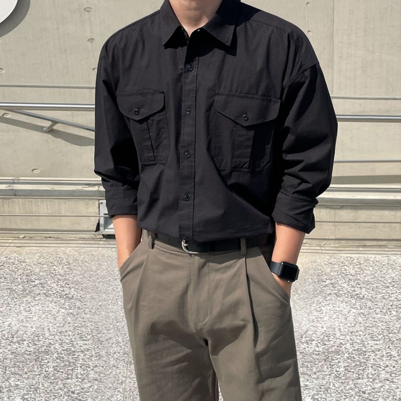 MYQ 오버롤 긴팔 셔츠 남자의 한국 스타일 유행 틈새 디자인 안감 세트 느슨한 내부 탑스토어 가기