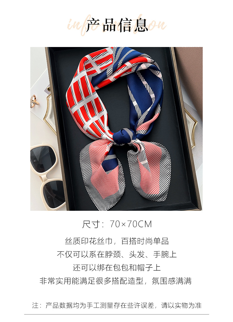 여름 얇은 프랑스 스카프 프랑스 기하학적 스트라이프 작은 사각형 새로운 패션 여성용 헤어 밴드 장식 전문 스카프스토어 가기