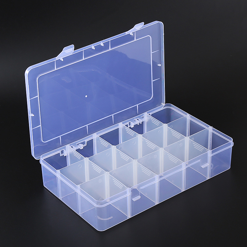 대형 15 그리드 보관 상자 이동식 투명 플라스틱 하드웨어 부품 구성 요소 장난감 문구 포장 상자