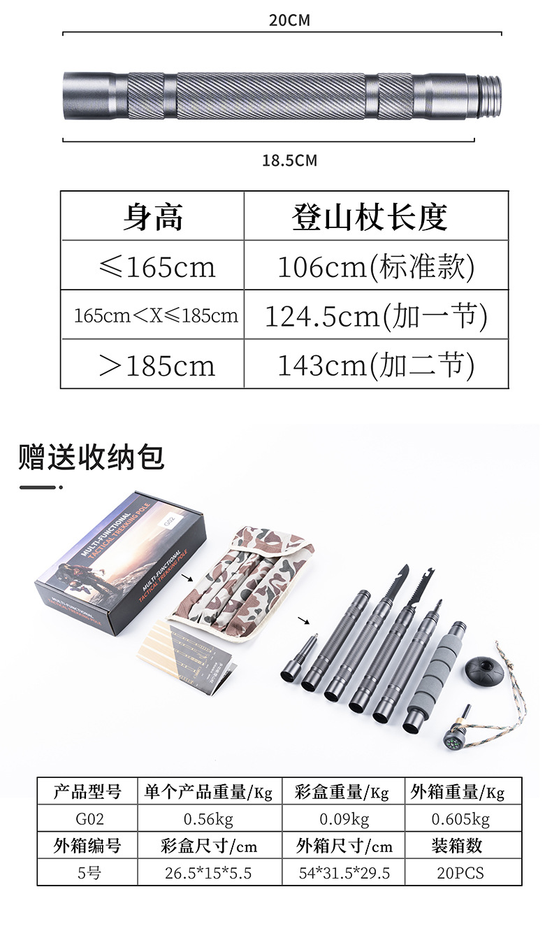 맞춤형 다기능 알루미늄 합금 하이킹 스틱 야외 하이킹 경량 5 섹션 텔레스코픽 접이식 미끄럼 방지 하이킹 스틱