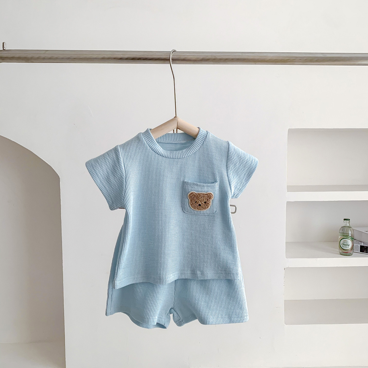 여름 소년과 소녀 세트 아기 서양 스타일 어린이의 성격 유행 한국 스포츠 인터넷 연예인 만화 곰 티셔츠 반바지스토어 가기
