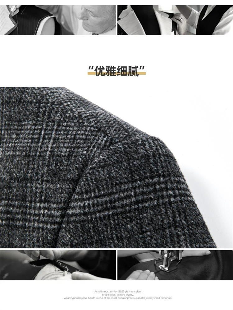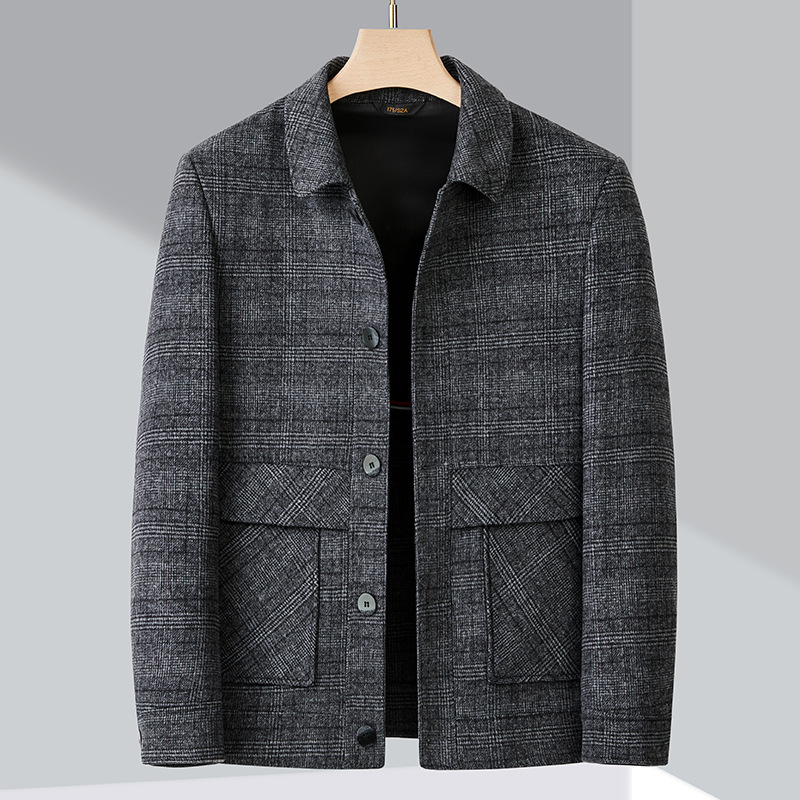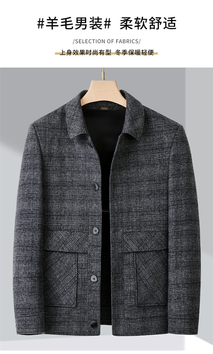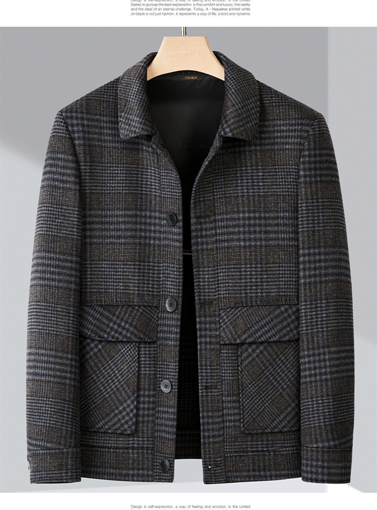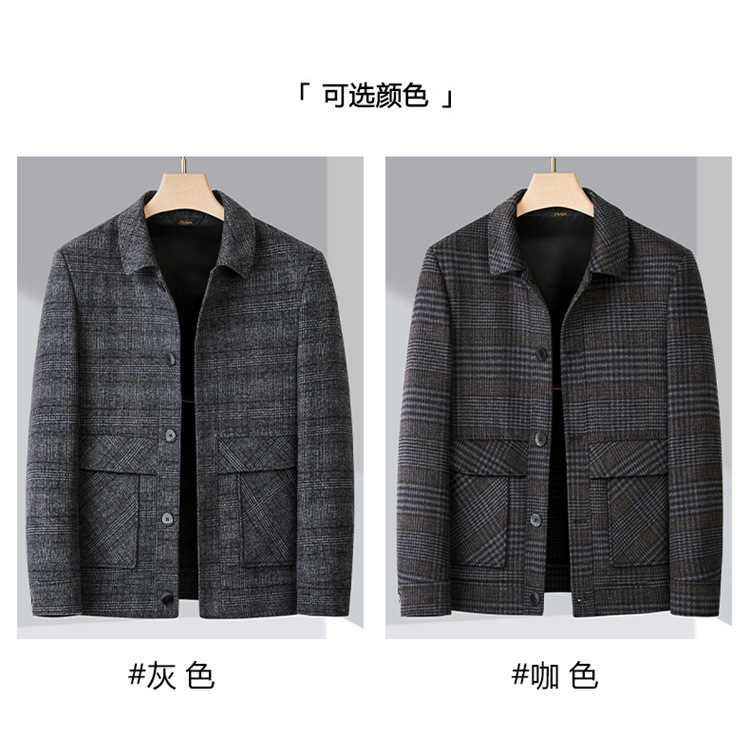 2023 새로운 울 재킷 코트 남성 옷깃 중년 아빠의 가을과 겨울 격자 무늬 재킷스토어 가기