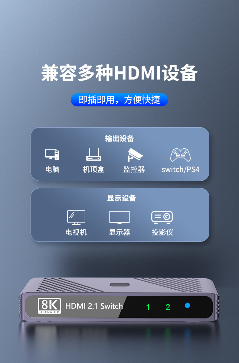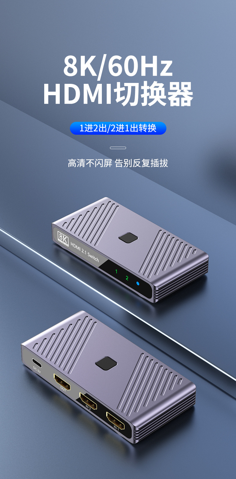 8K 고화질 1대2 240HZ 초고주사율 1대2 주파수 분배기 HDR 2입력 1출력 HDMI 스위처