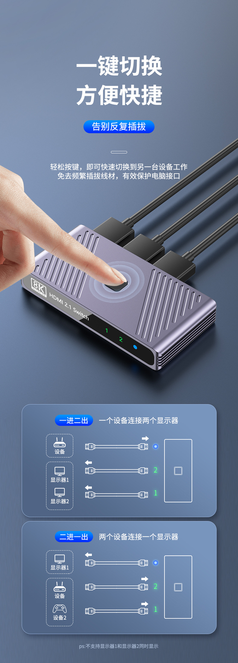8K 고화질 1대2 240HZ 초고주사율 1대2 주파수 분배기 HDR 2입력 1출력 HDMI 스위처스토어 가기