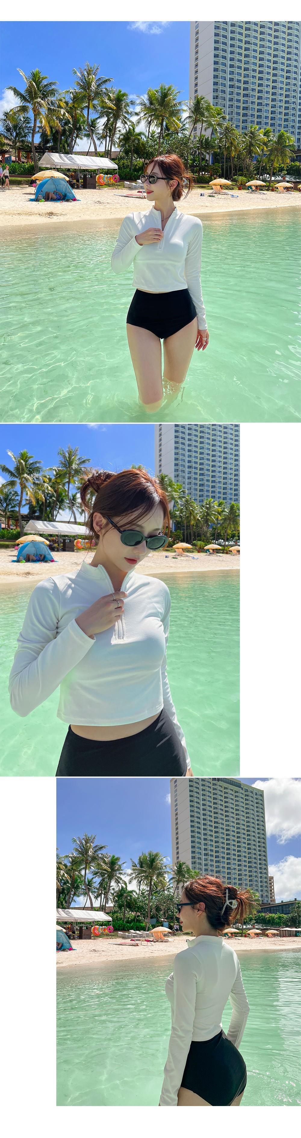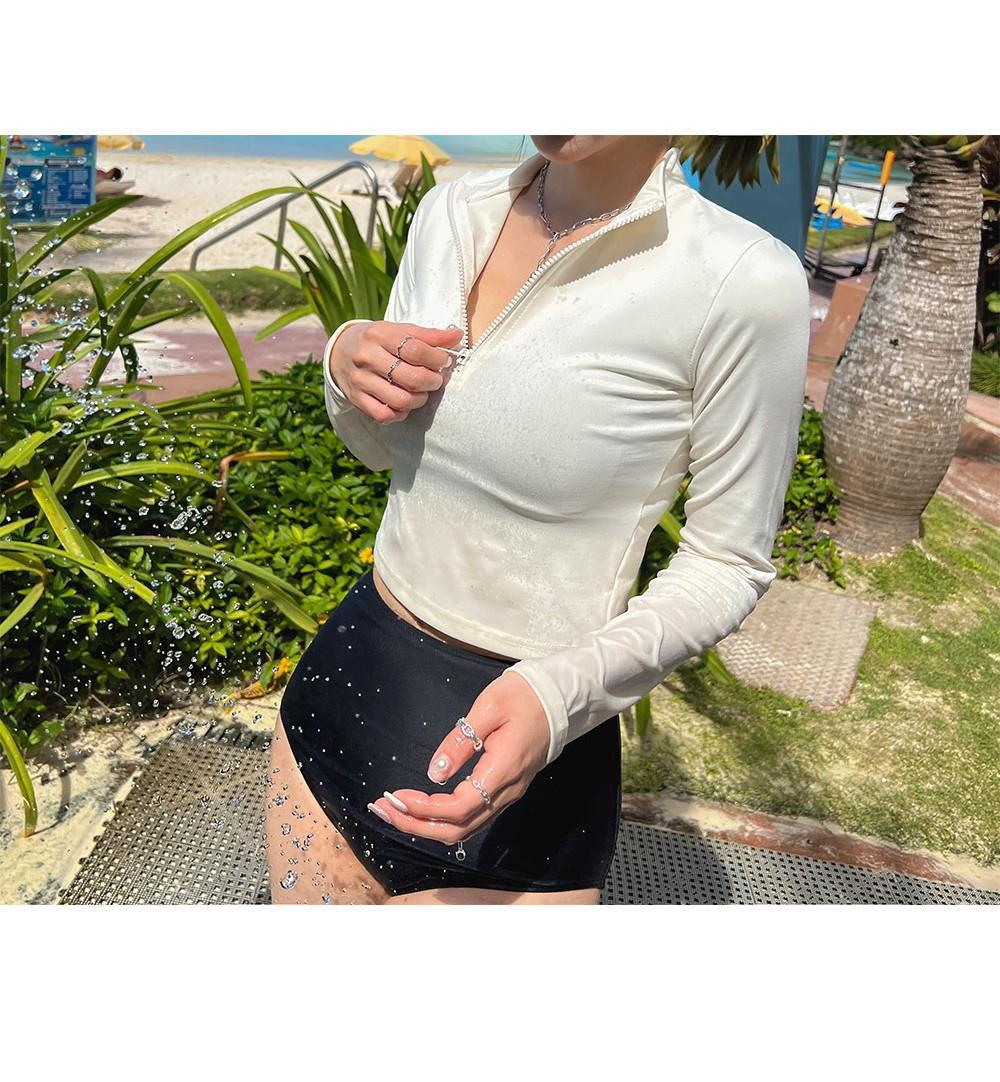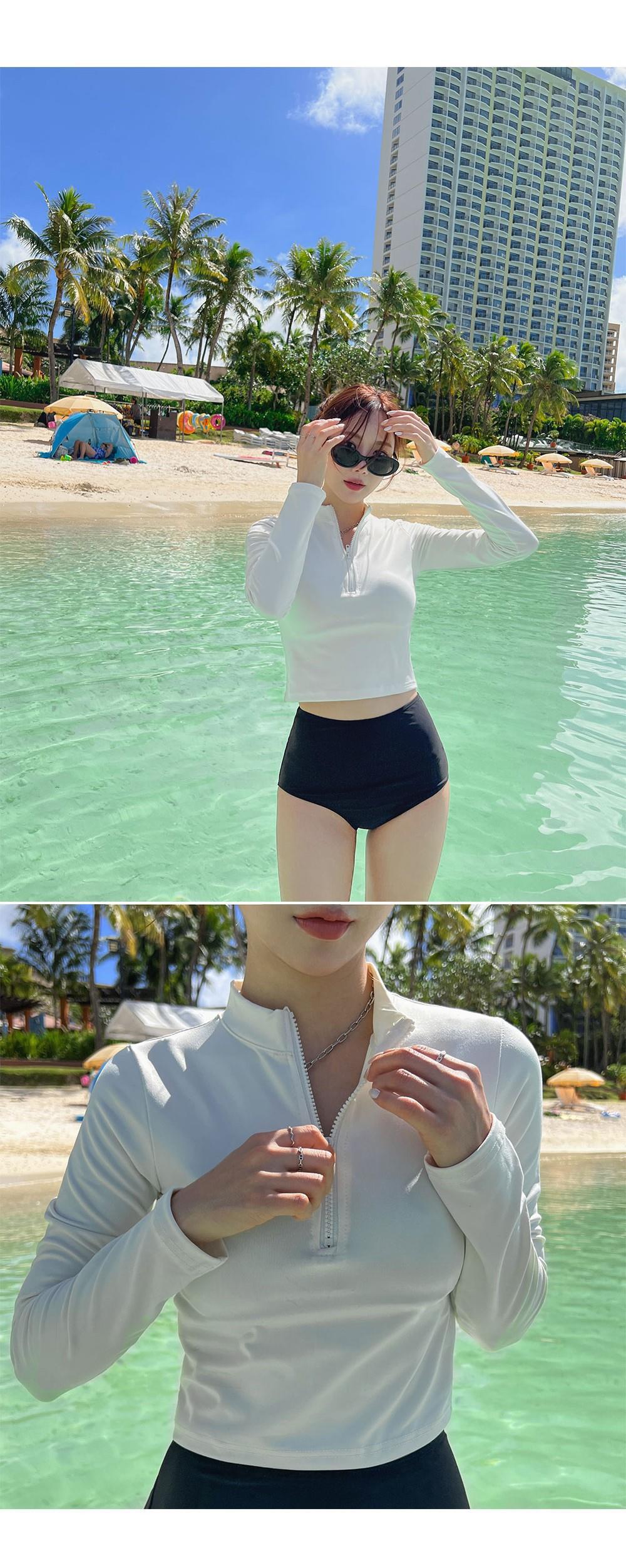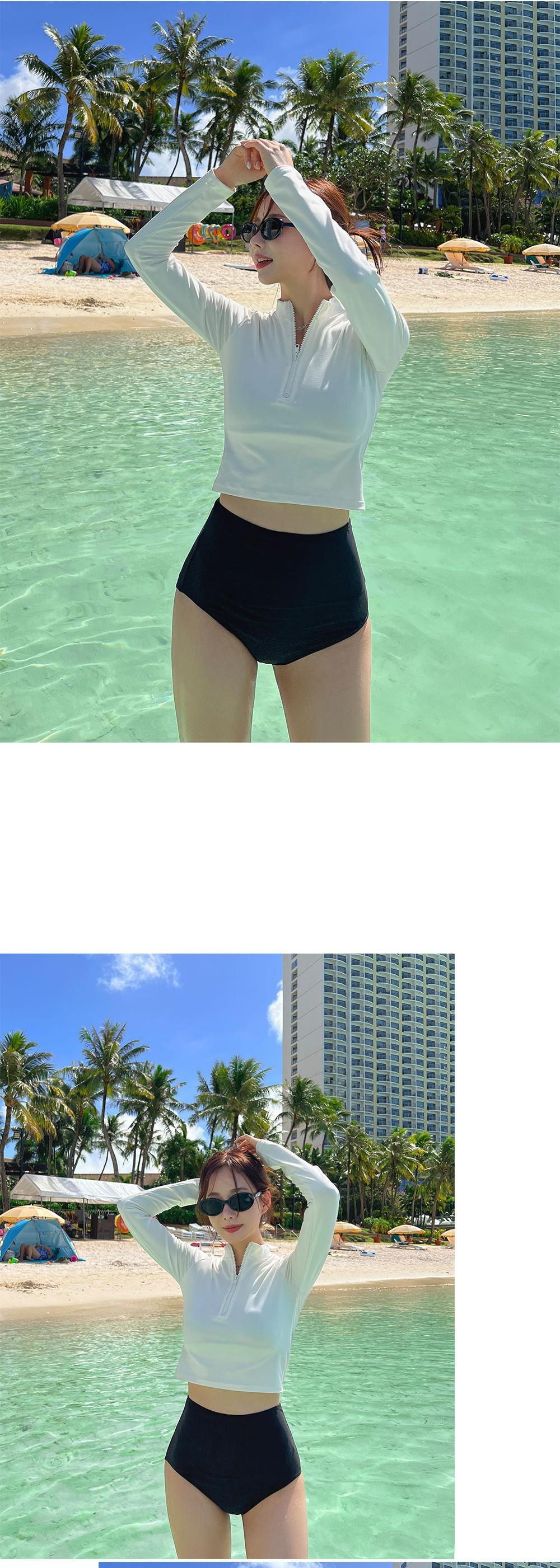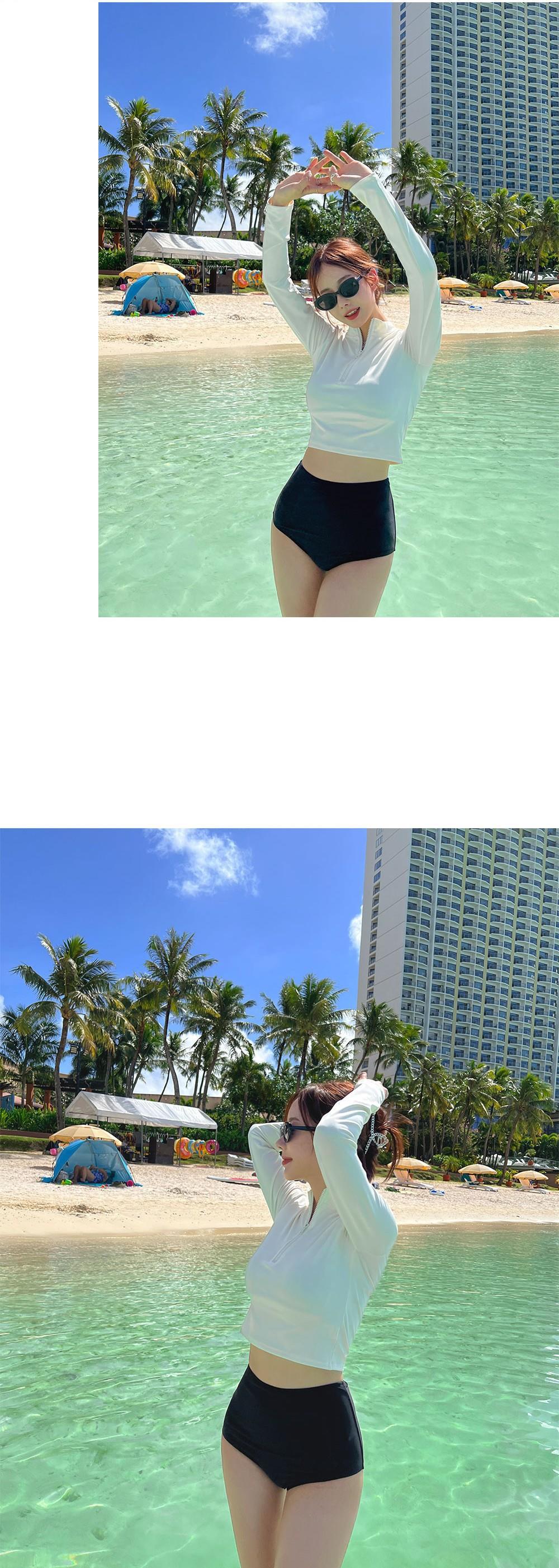 스타일 지퍼 하이 넥 스플릿 수영복 여성용 수영복 선 스크린 긴 소매 여성용 하이 웨이스트 스노클링 다이빙 세트