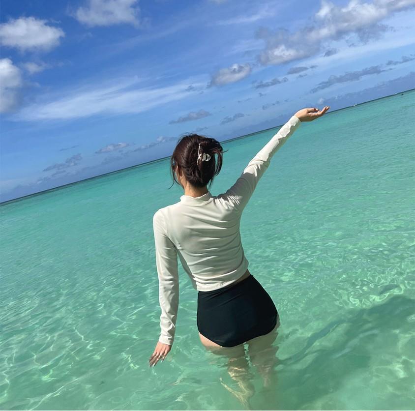 스타일 지퍼 하이 넥 스플릿 수영복 여성용 수영복 선 스크린 긴 소매 여성용 하이 웨이스트 스노클링 다이빙 세트스토어 가기