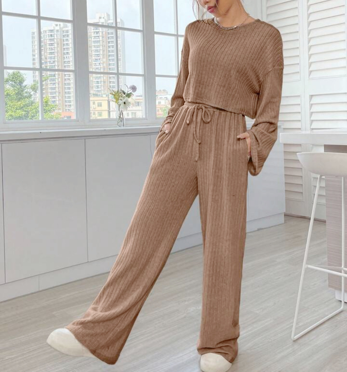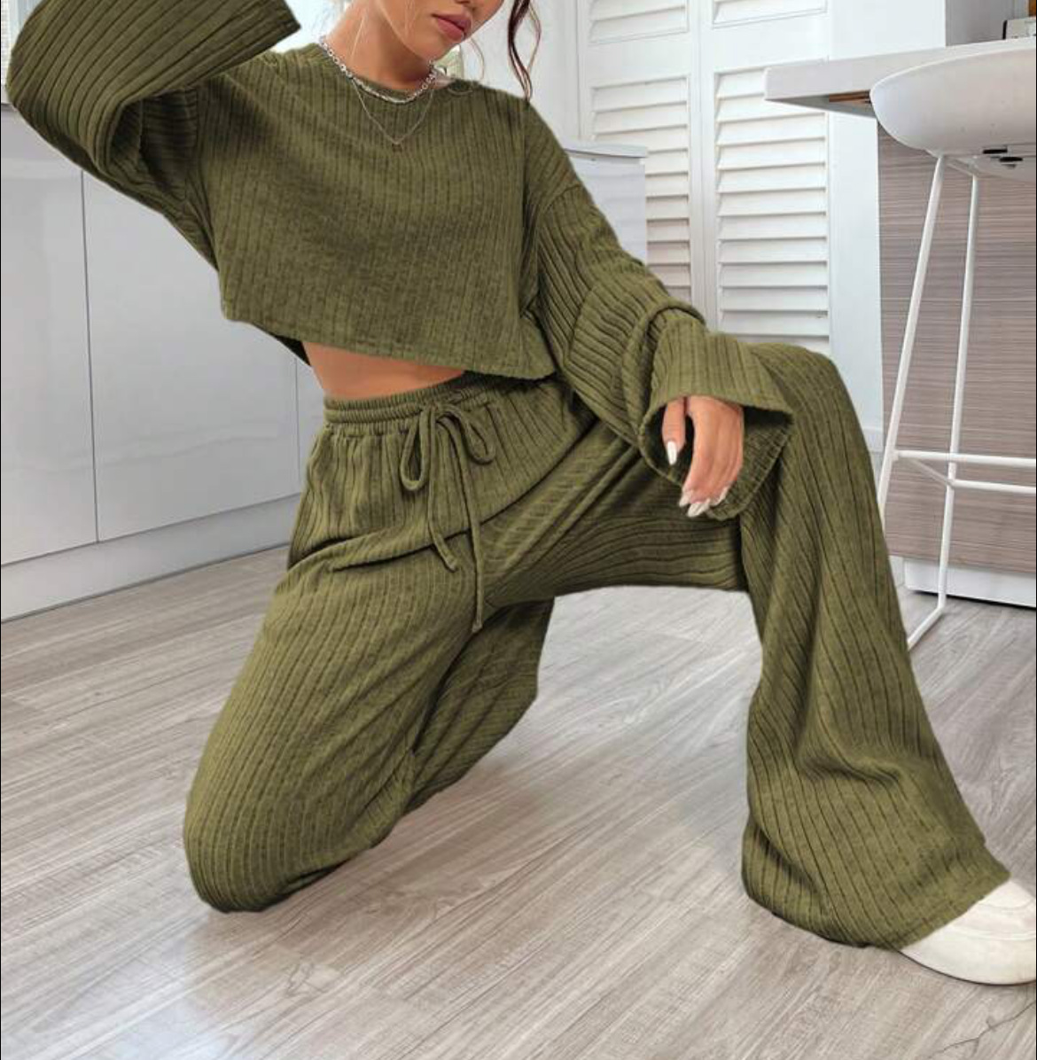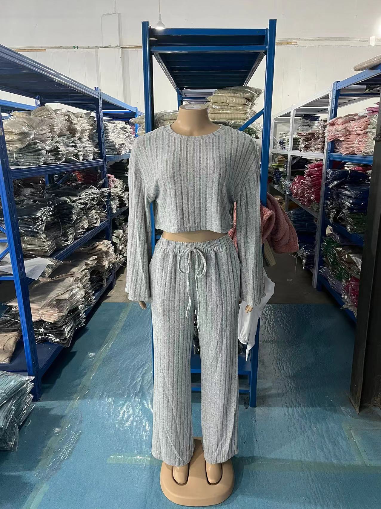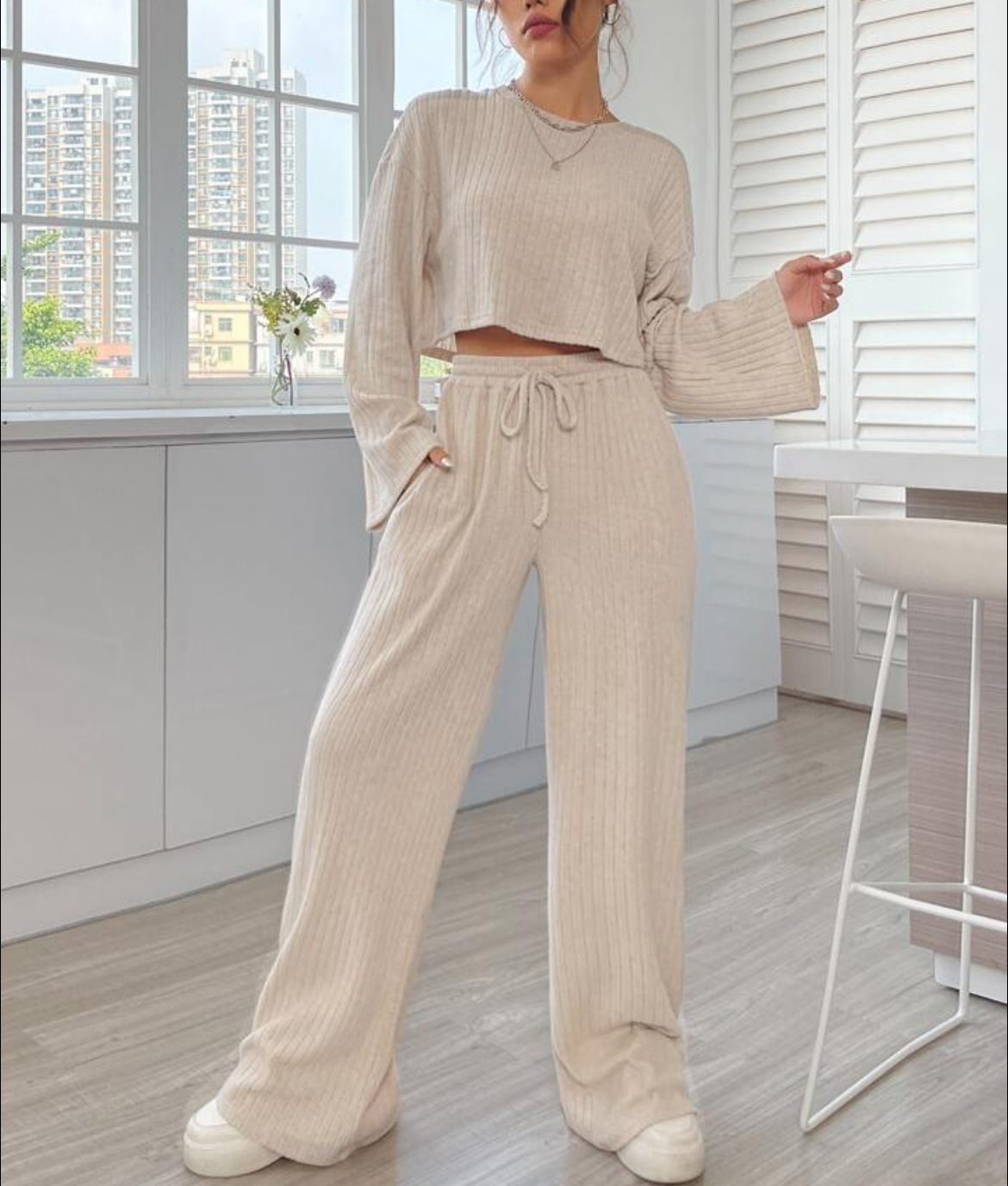 2023 아마존 유럽과 미국 대외 무역 가을/겨울 새로운 캐주얼 홈 의류 니트 긴 소매 여성 세트