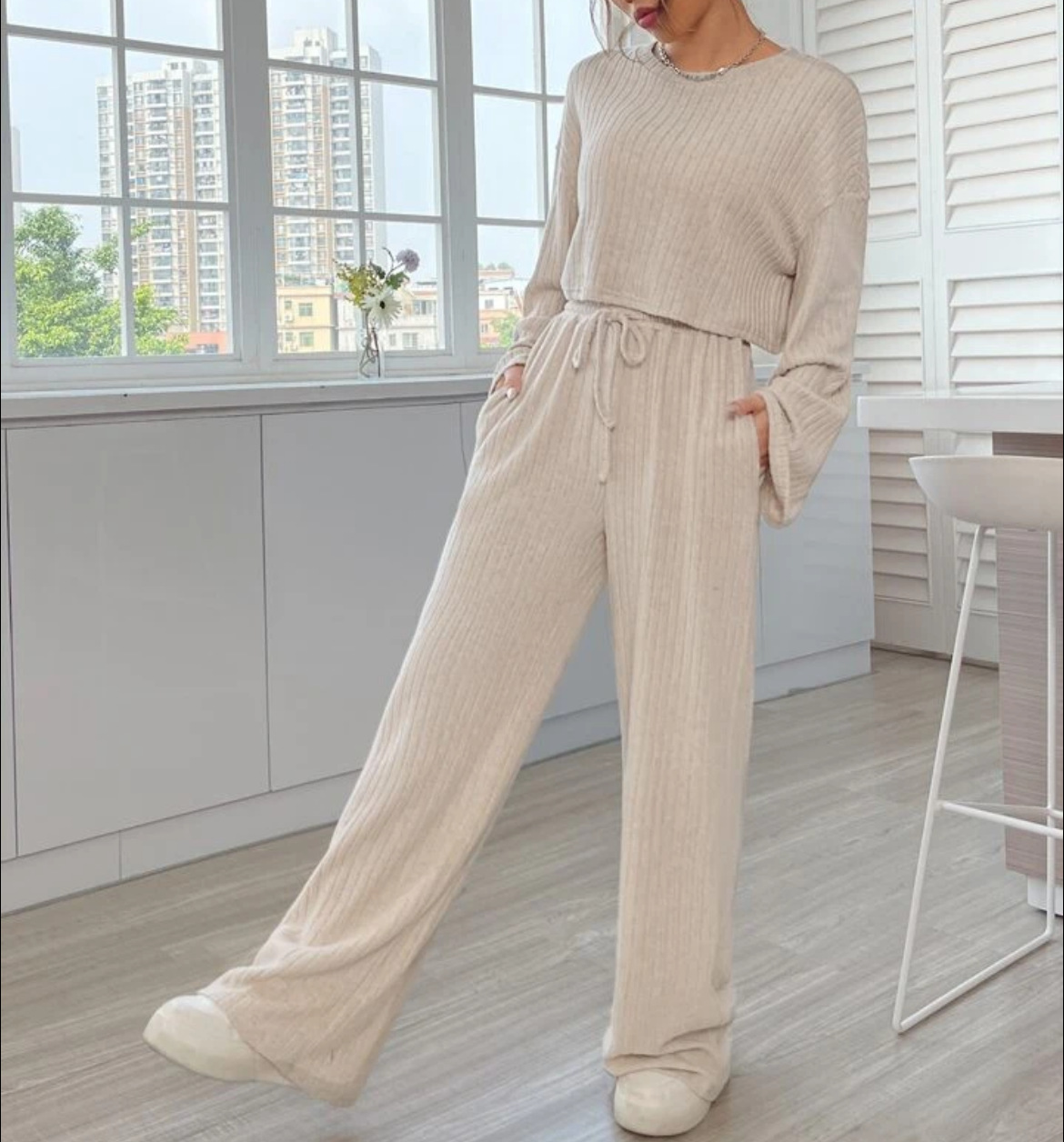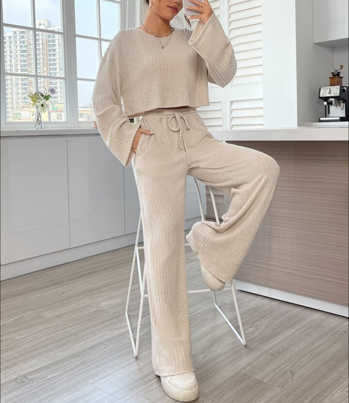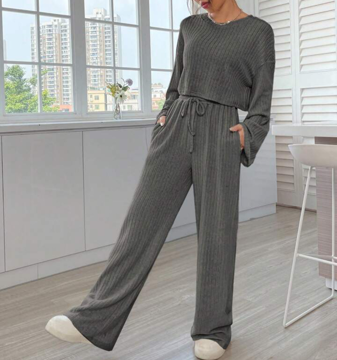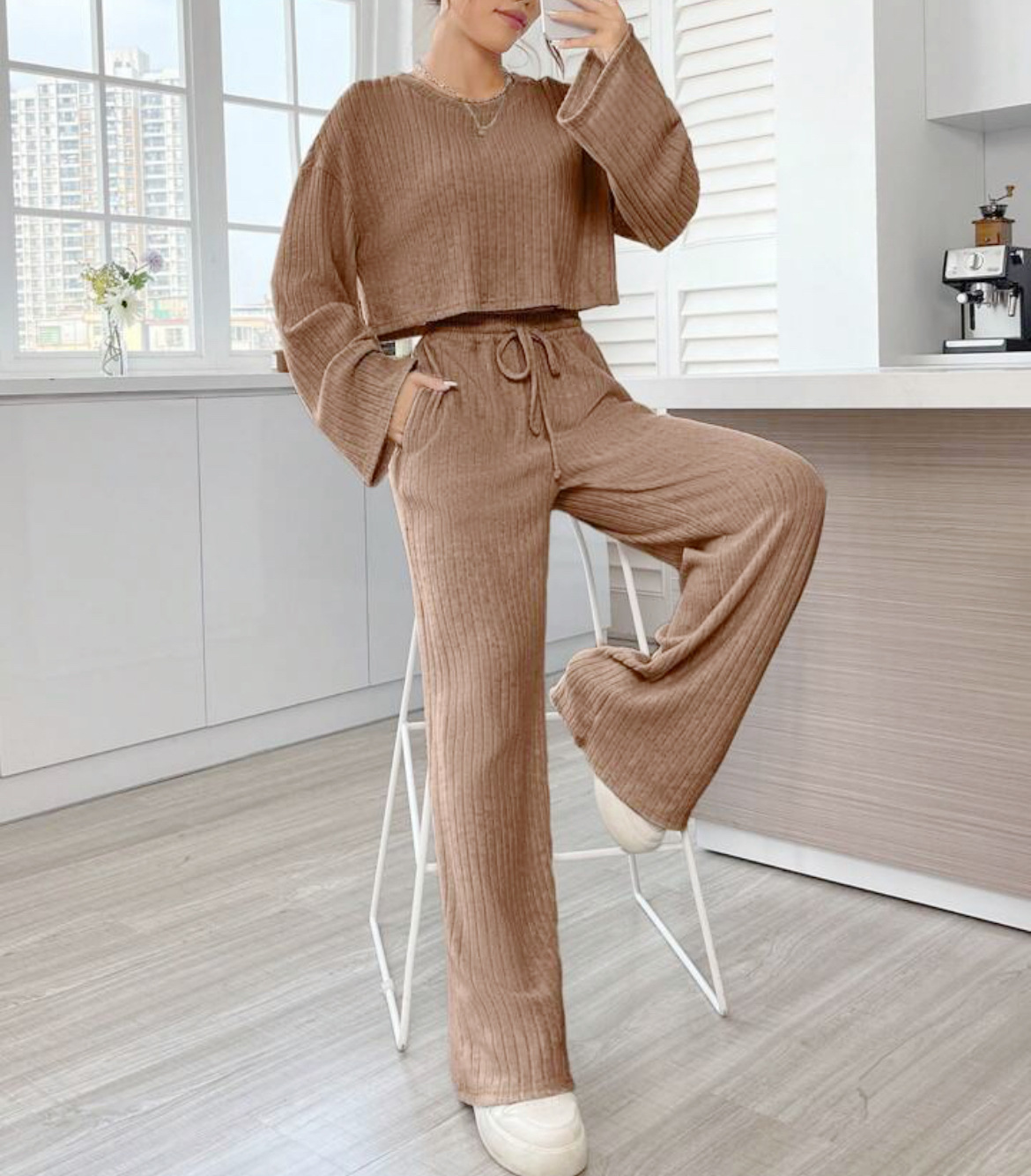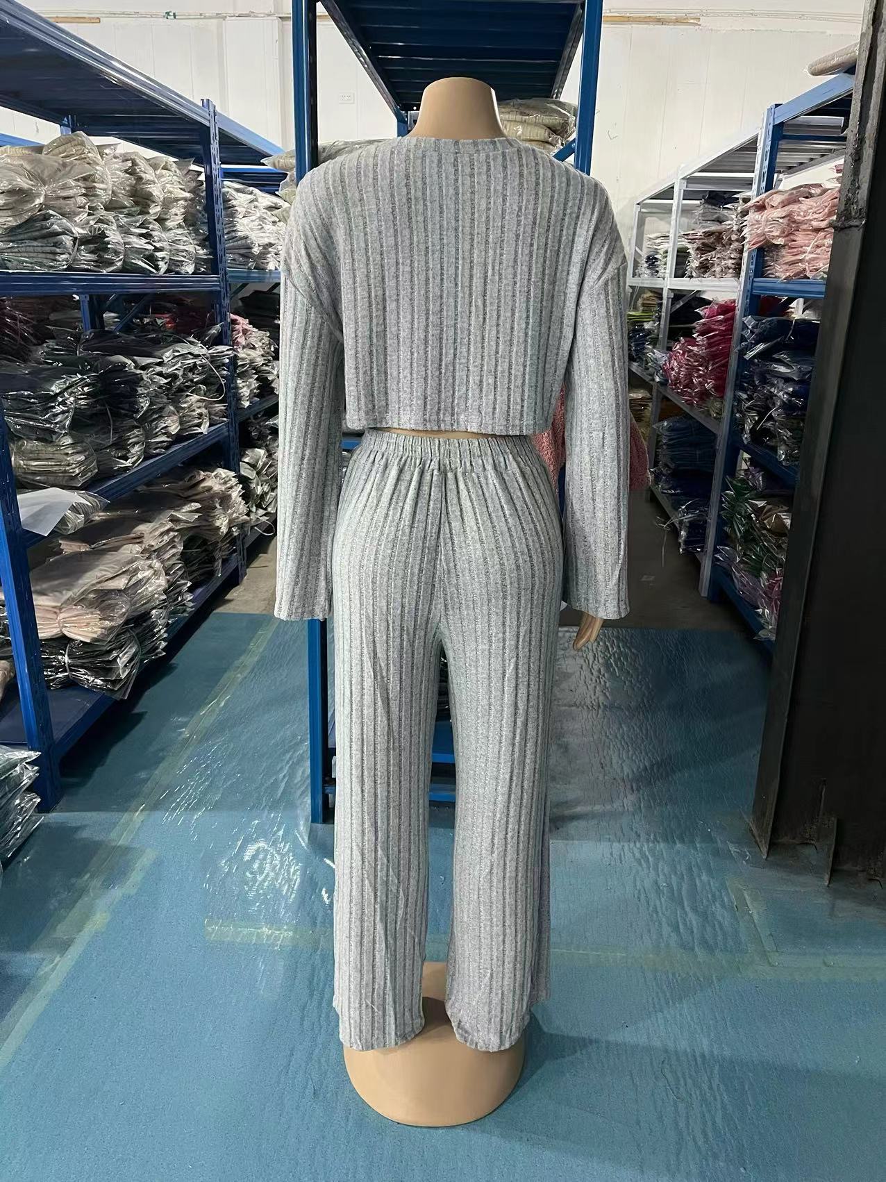 2023 아마존 유럽과 미국 대외 무역 가을/겨울 새로운 캐주얼 홈 의류 니트 긴 소매 여성 세트