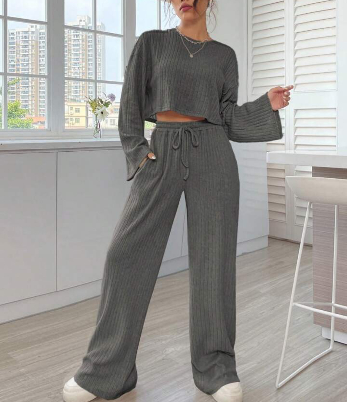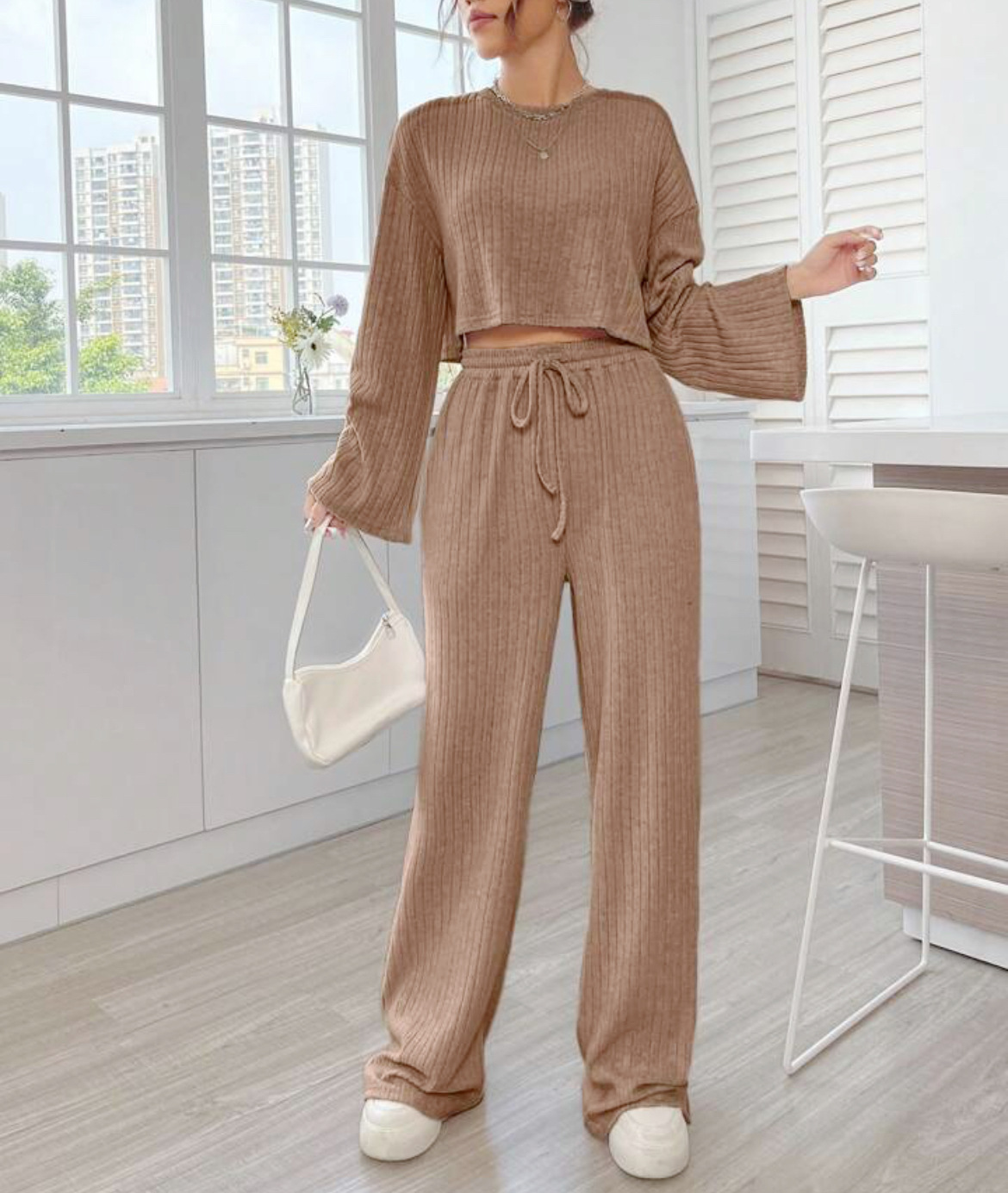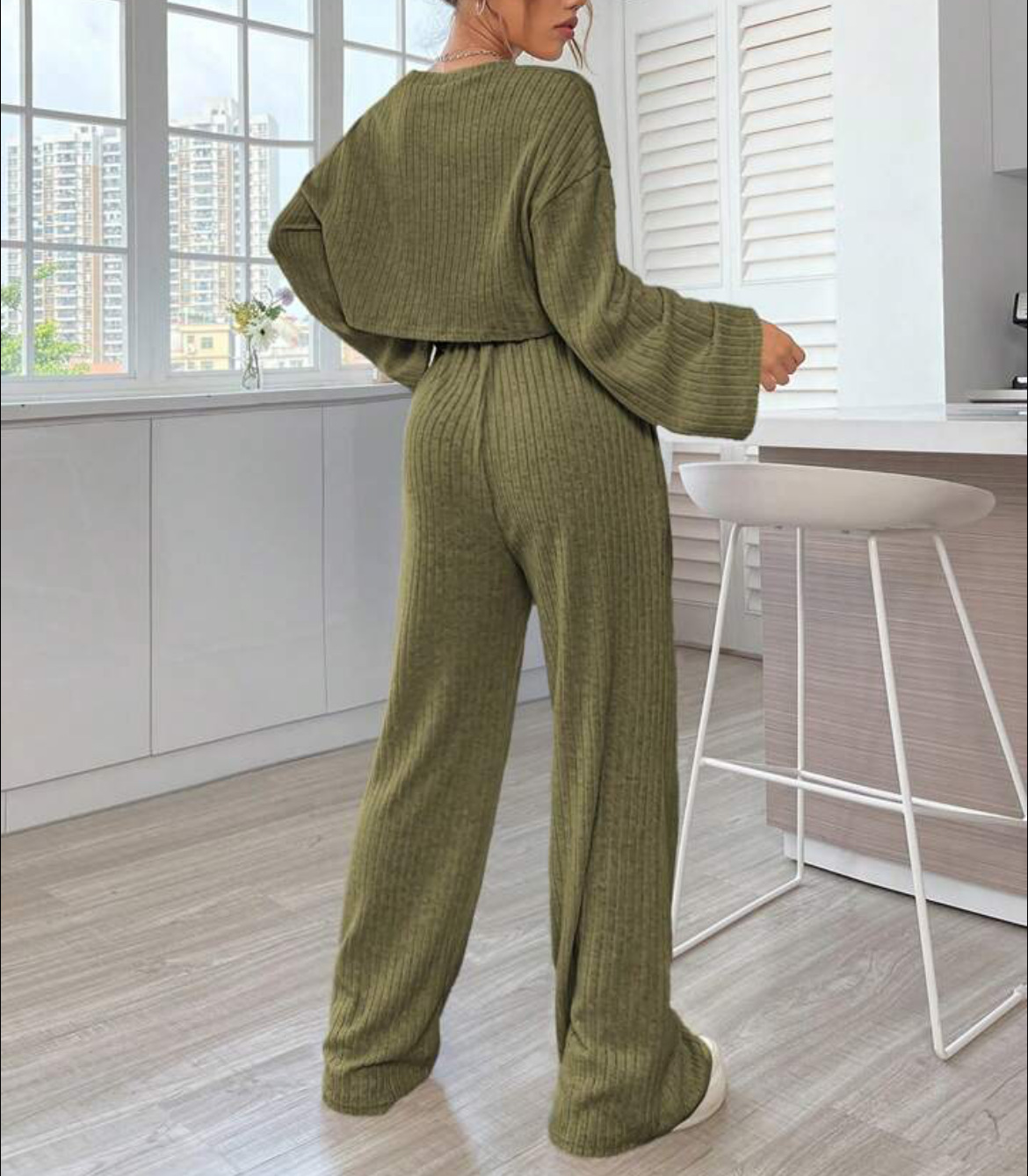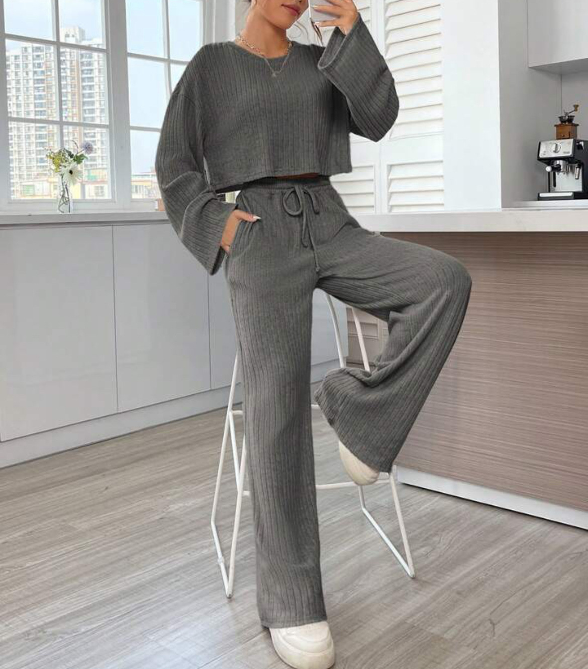 2023 아마존 유럽과 미국 대외 무역 가을/겨울 새로운 캐주얼 홈 의류 니트 긴 소매 여성 세트