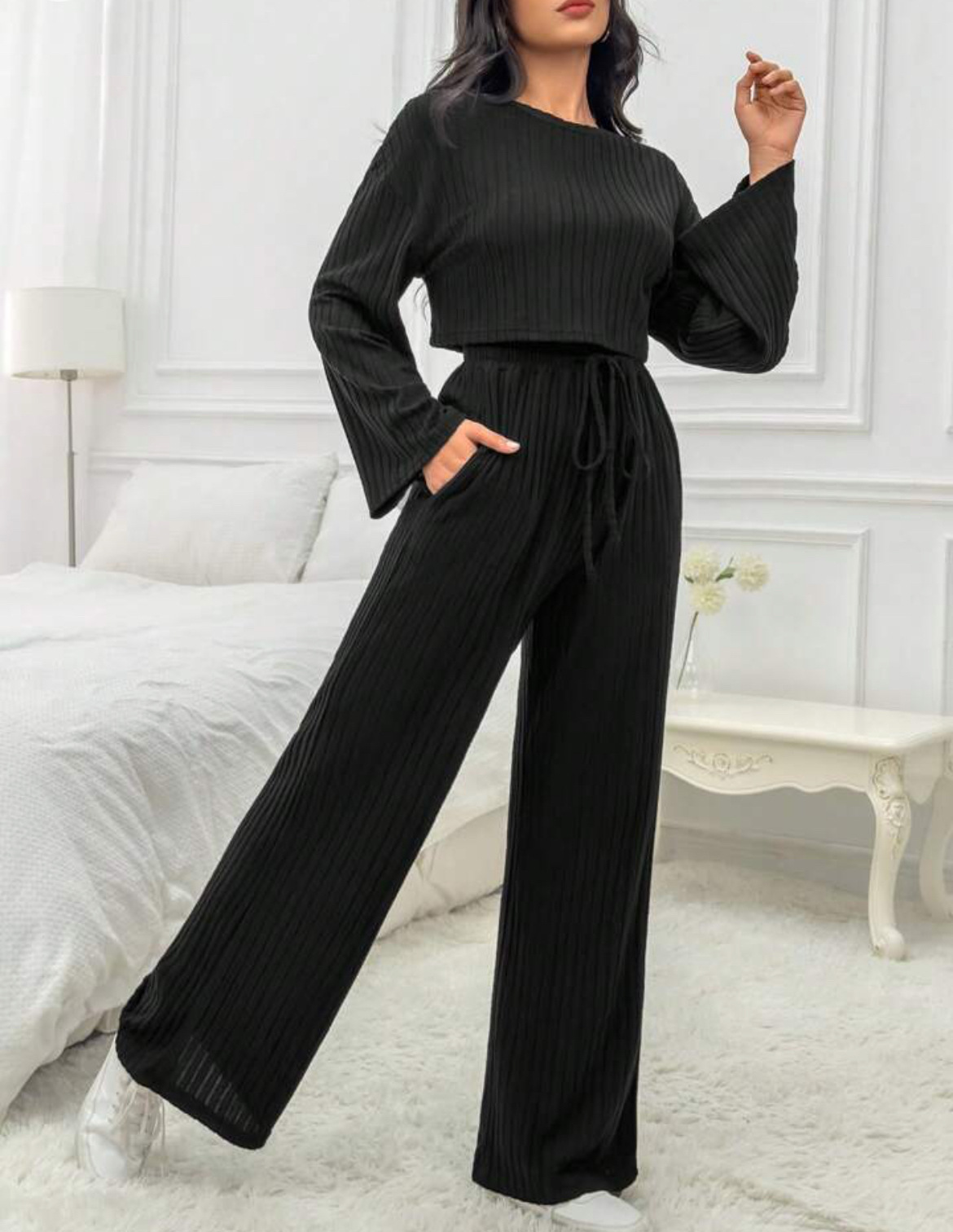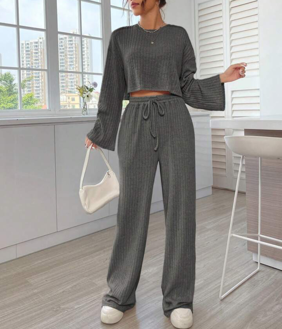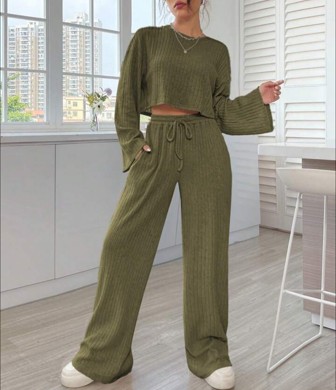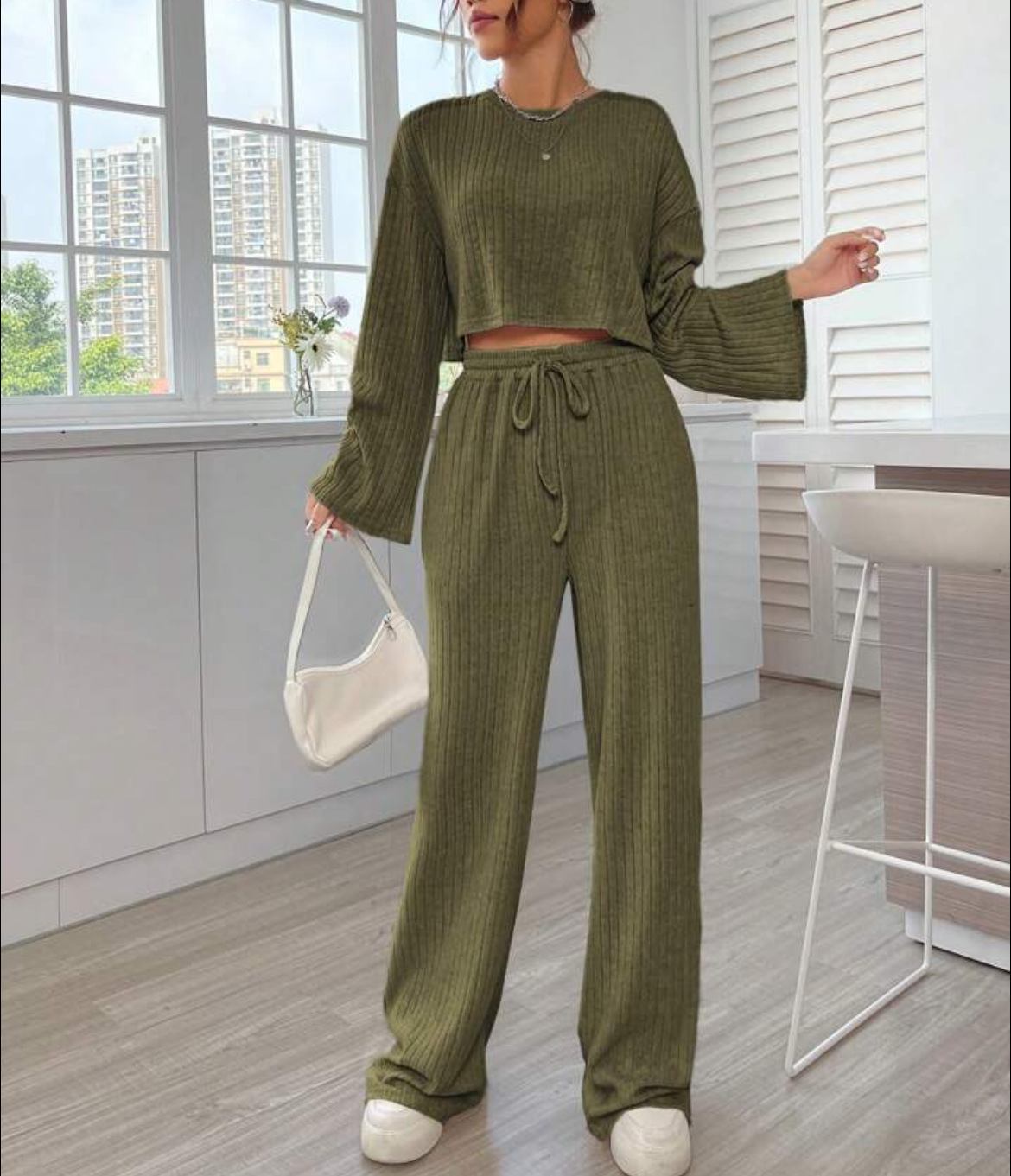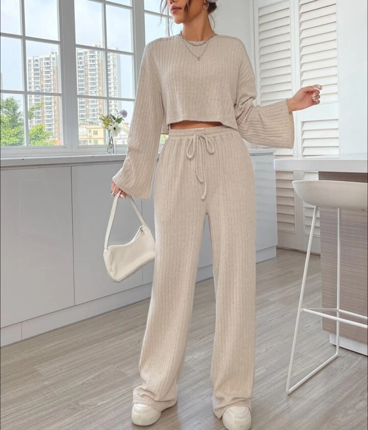 2023 아마존 유럽과 미국 대외 무역 가을/겨울 새로운 캐주얼 홈 의류 니트 긴 소매 여성 세트