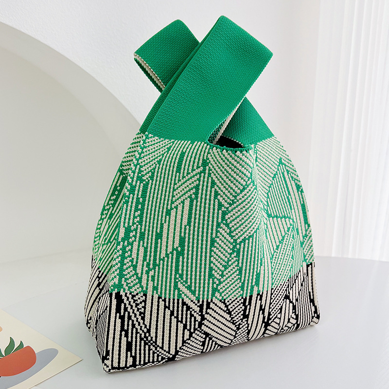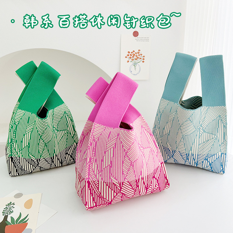 핸드백 여성용 한국식 격자 무늬 핸드백 대비 색상 니트 가방 모든 매치 캐주얼 조끼 가방 쇼핑 토트 백