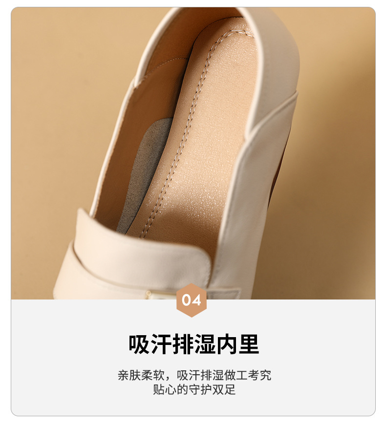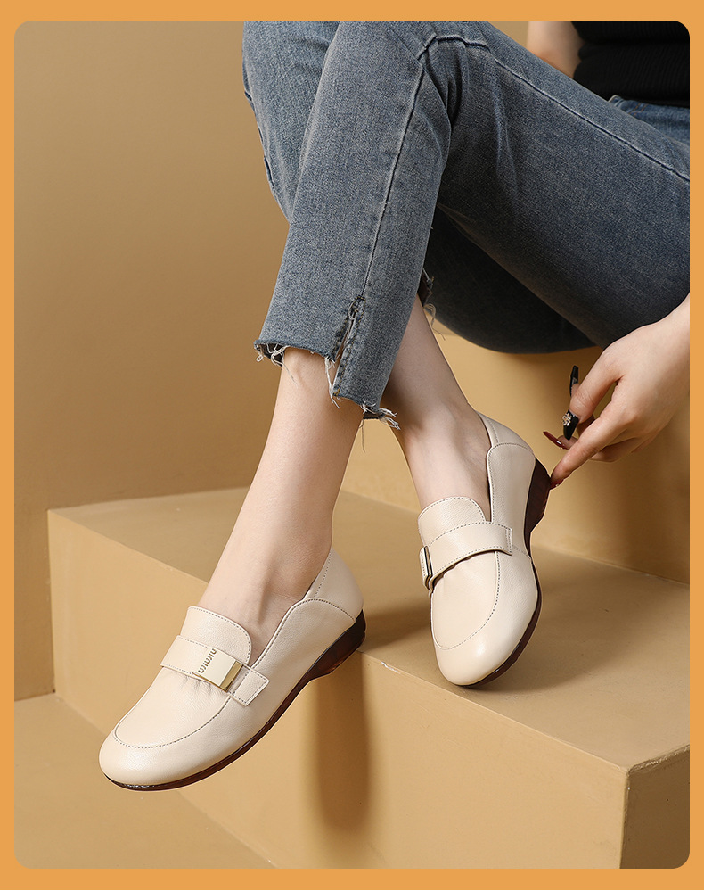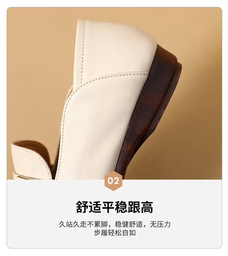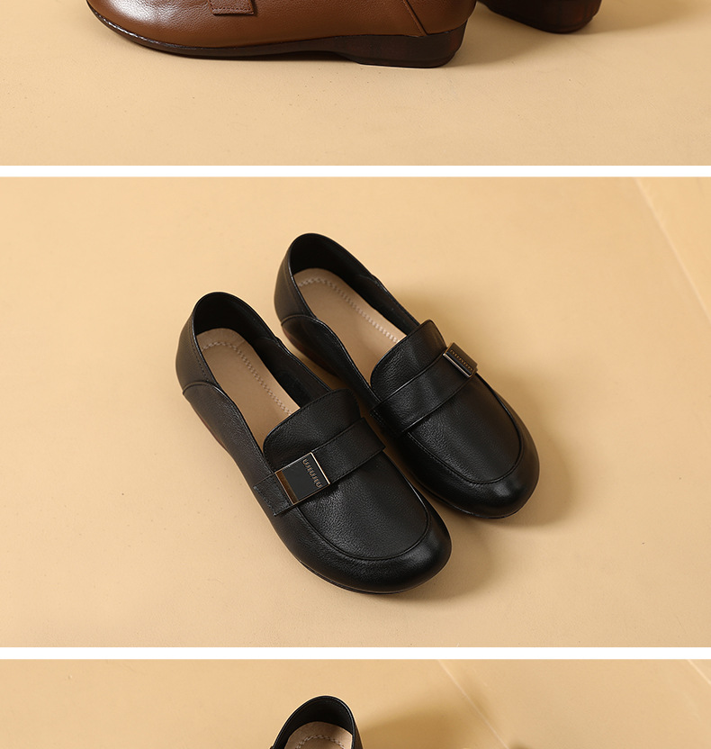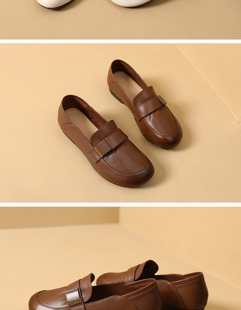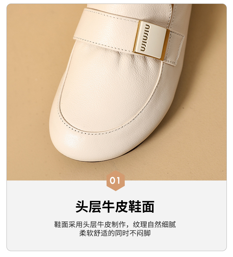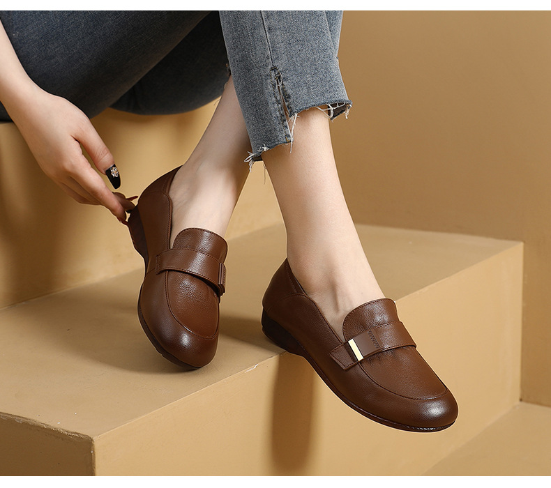 라운드 토 플랫 로퍼 여자의 2023 봄 새로운 탑 레이어 소가죽 소프트 바닥 플러스 사이즈 43 싱글 신발 스퀘어 버클 콩 신발스토어 가기