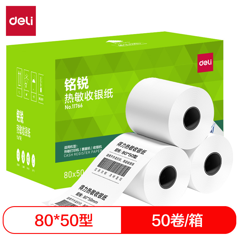 Deli Mingrui 57x50 열 현금 등록 용지 58mm 인쇄 용지 80x80 슈퍼마켓 티켓 종이 Meituan 57x40 사무실스토어 가기