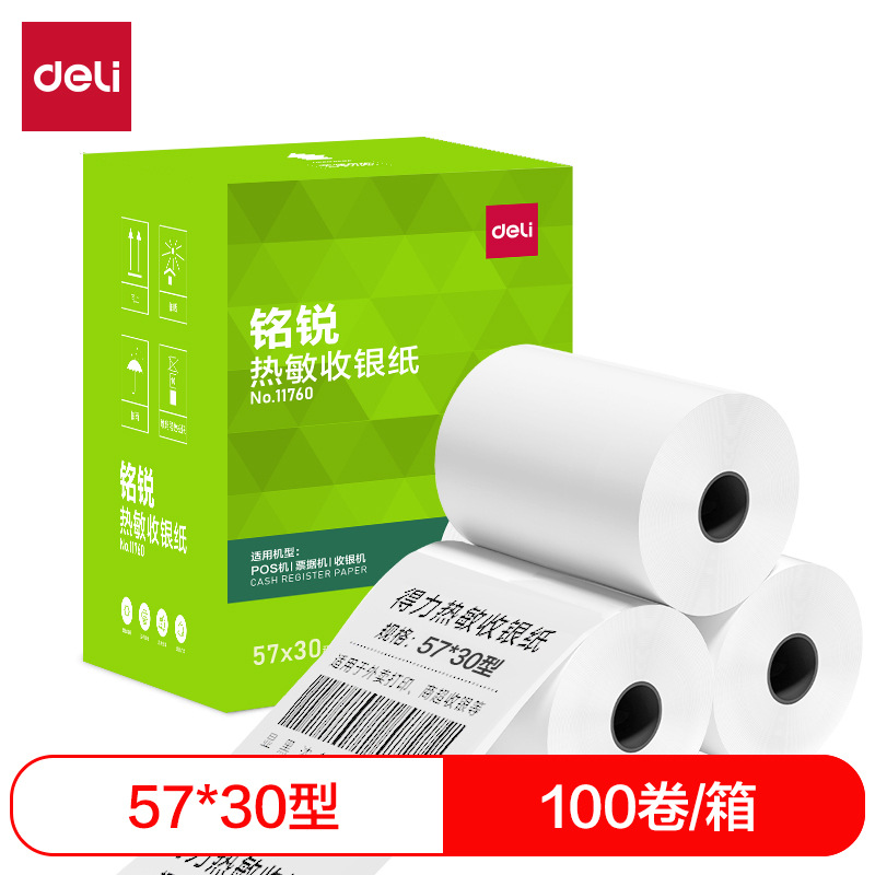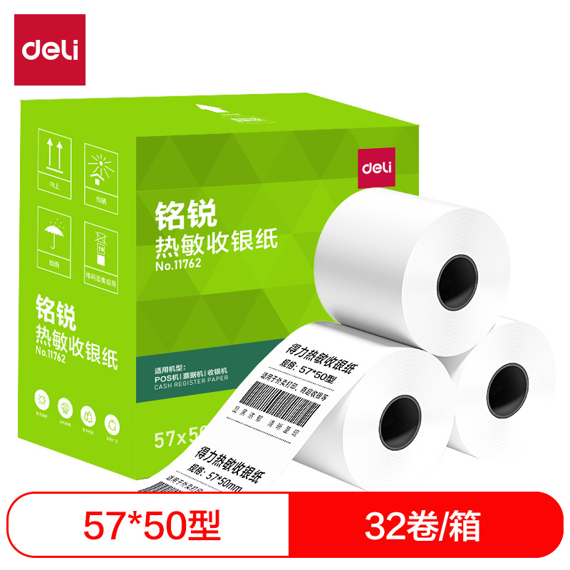 Deli Mingrui 57x50 열 현금 등록 용지 58mm 인쇄 용지 80x80 슈퍼마켓 티켓 종이 Meituan 57x40 사무실