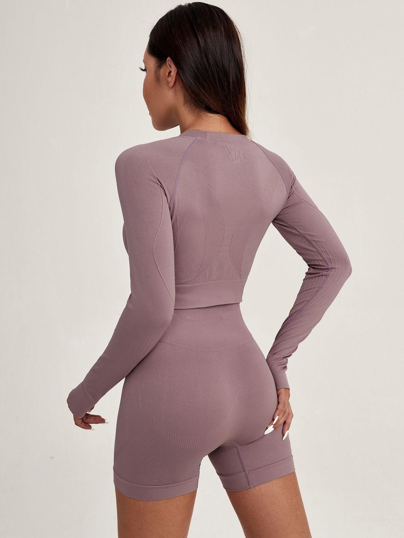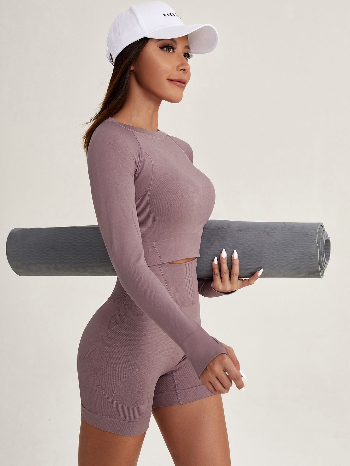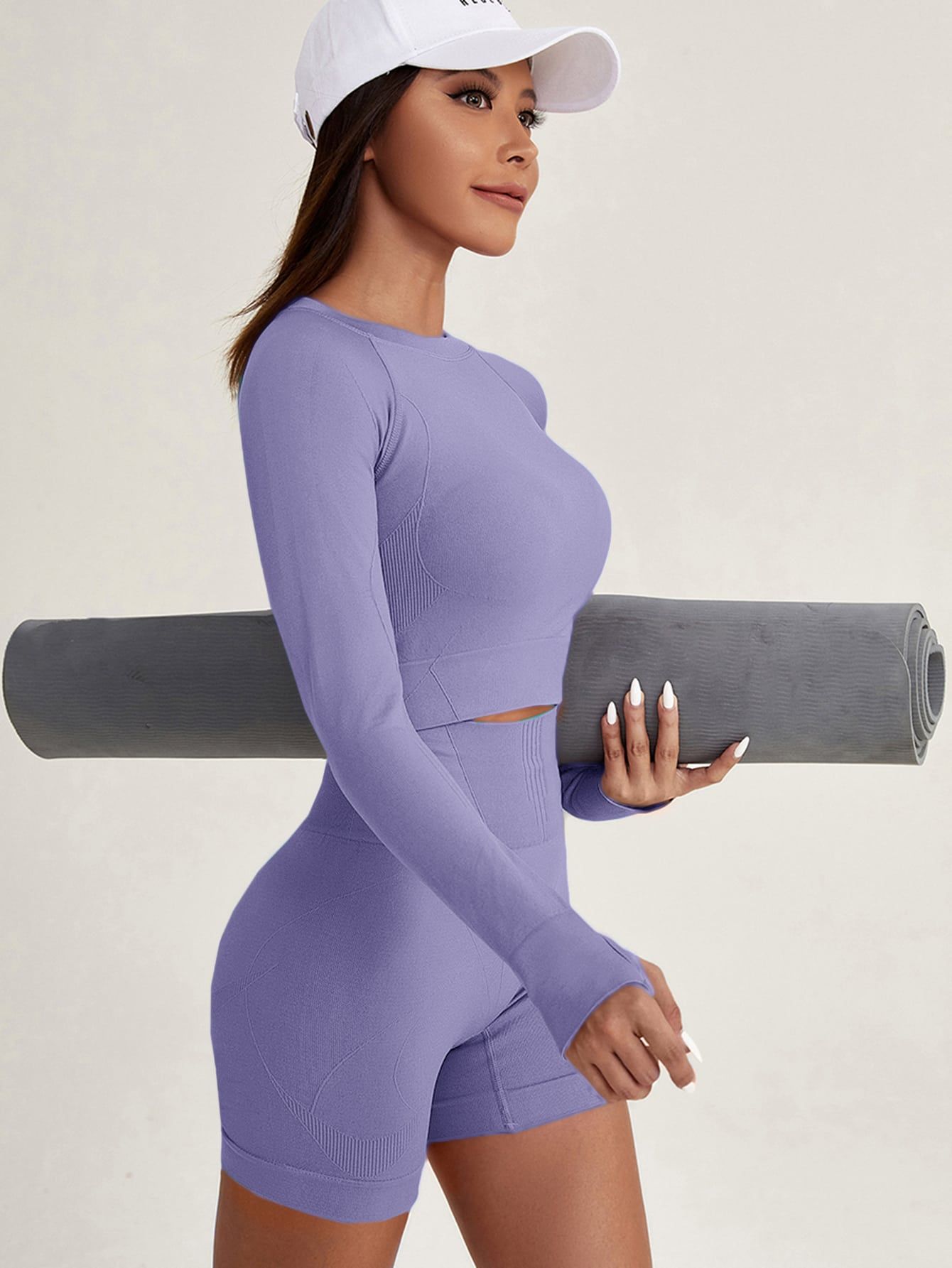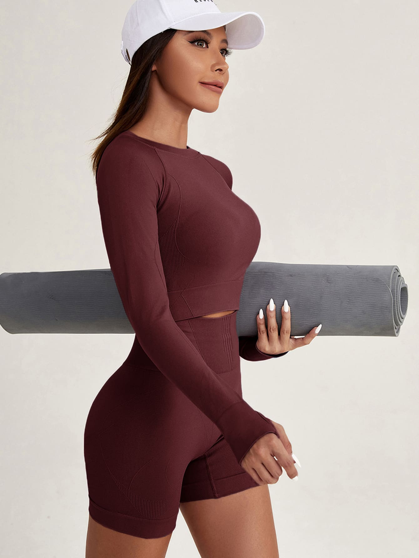 무야오 솔리드 컬러 긴팔 3부 팬츠 스포츠 슈트 러닝 피트니스 요가복 여성용 투피스 세트 타이트핏 속건성 편안함