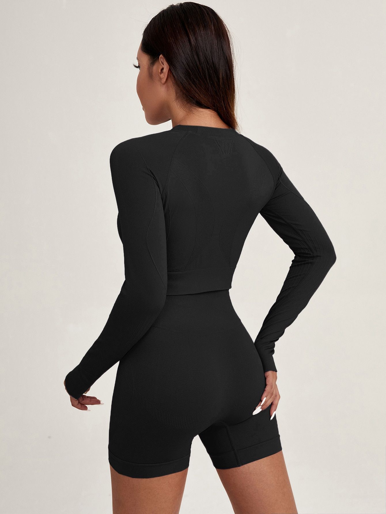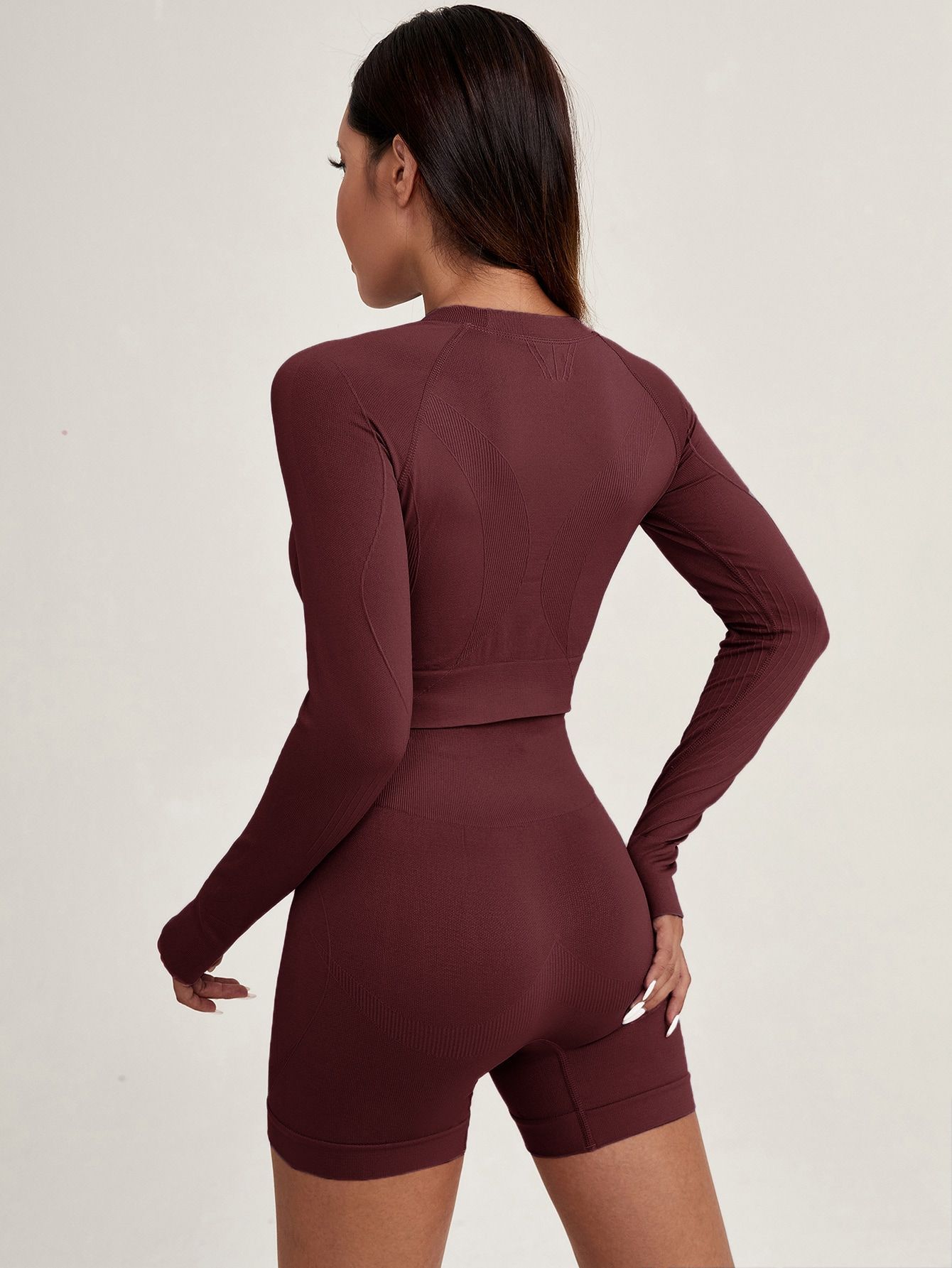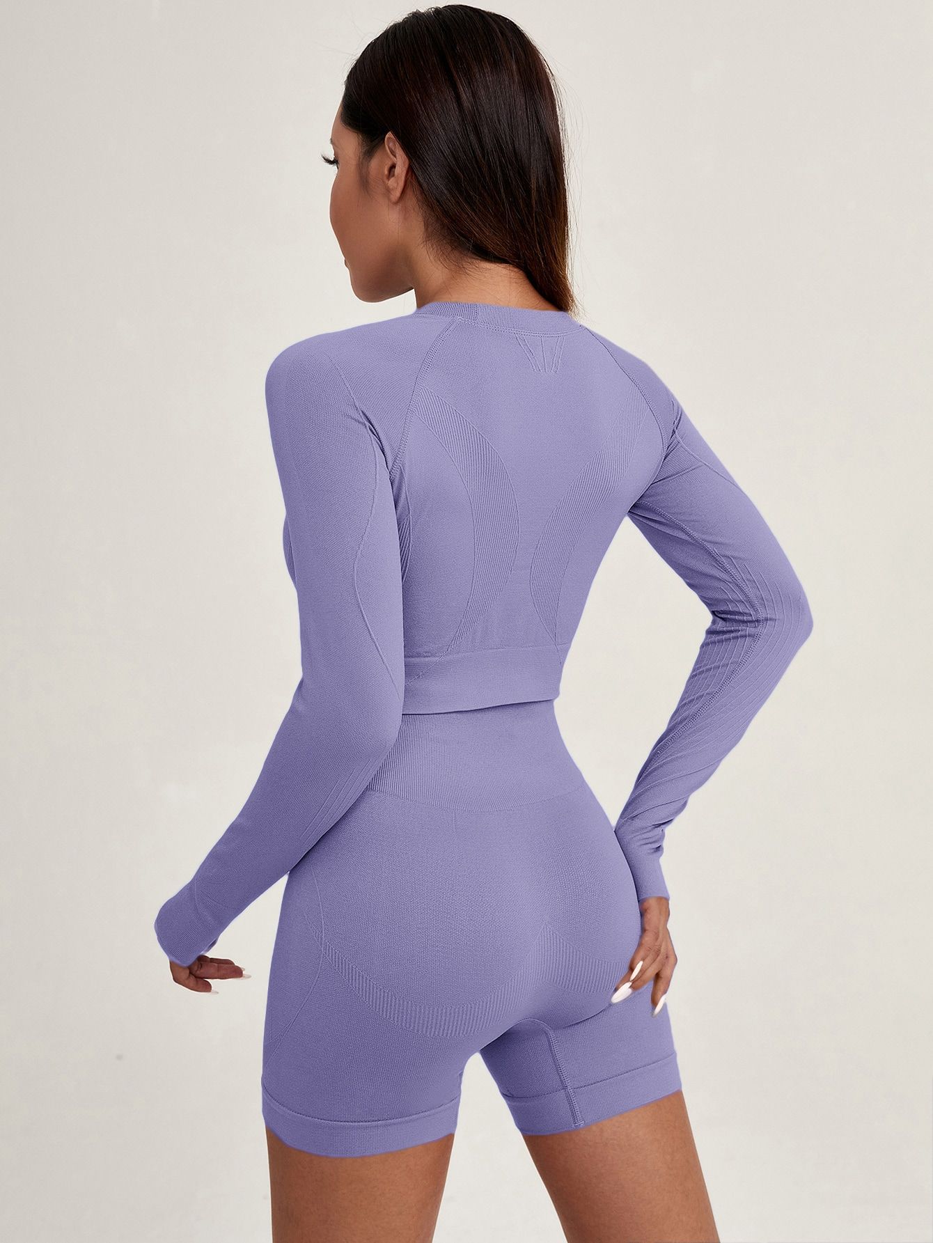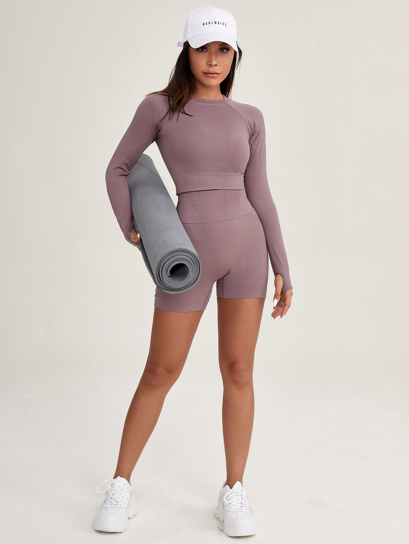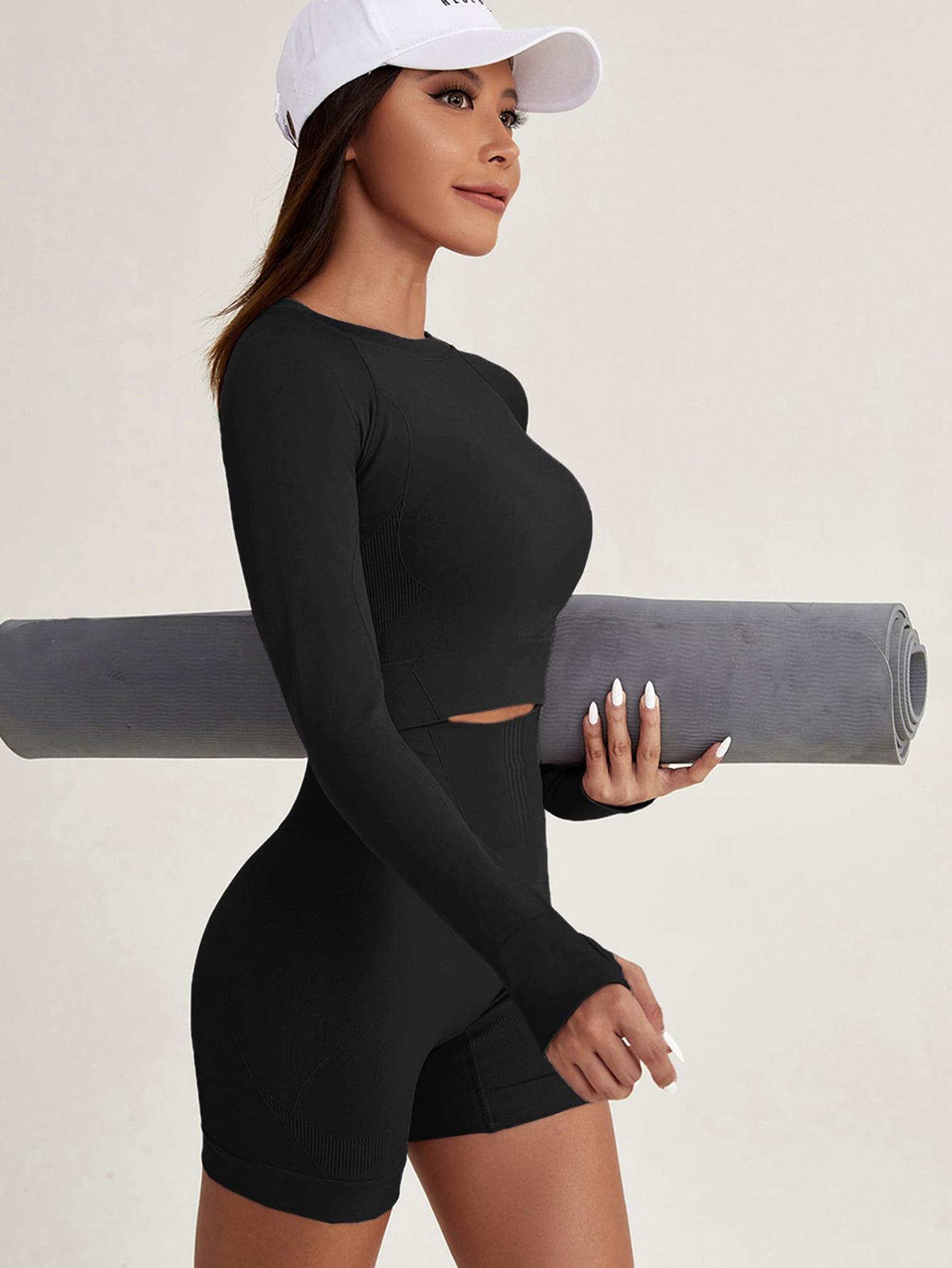 무야오 솔리드 컬러 긴팔 3부 팬츠 스포츠 슈트 러닝 피트니스 요가복 여성용 투피스 세트 타이트핏 속건성 편안함