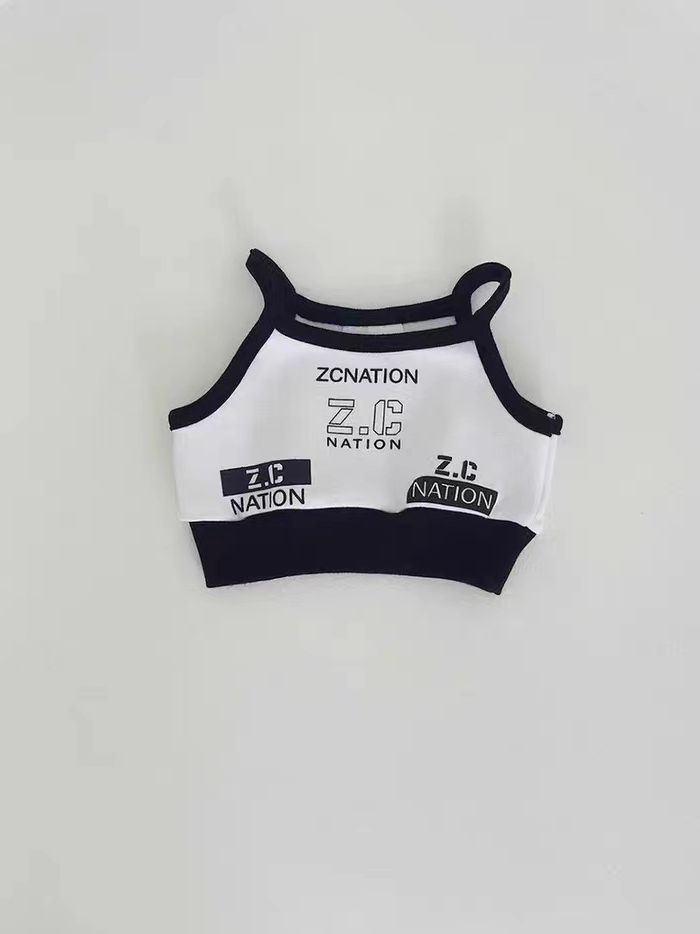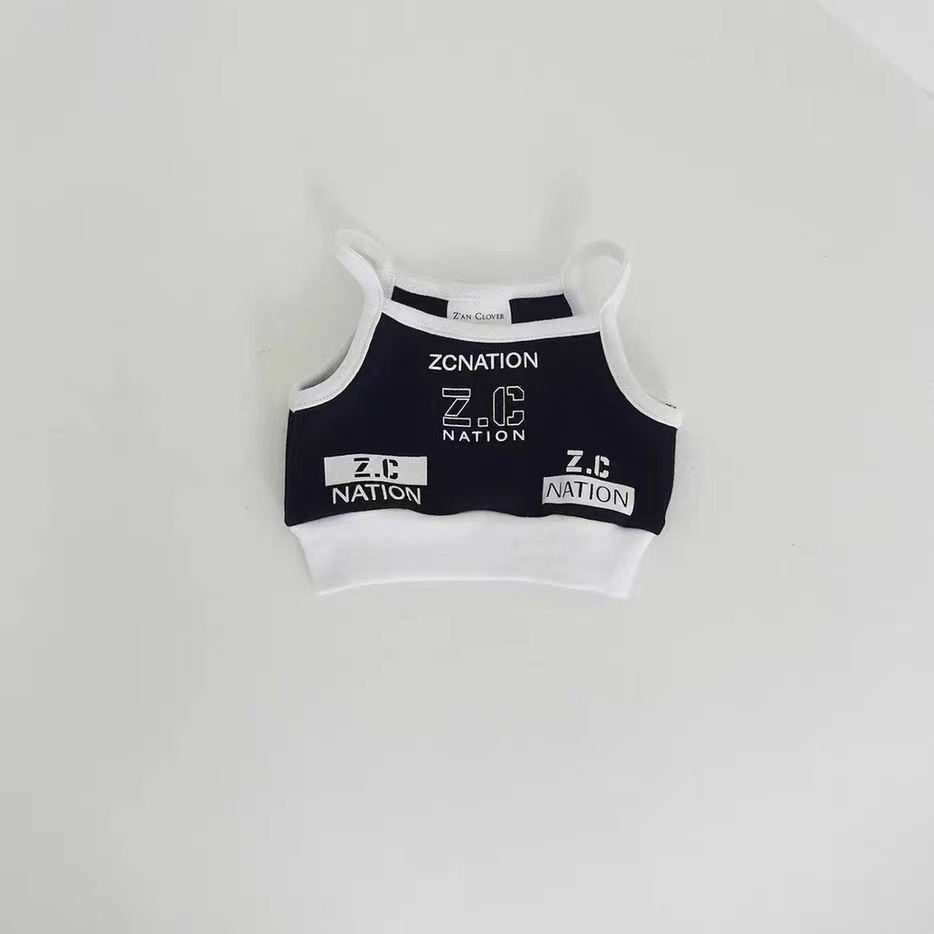 아동복 23 여름 한국 부모-자식 찢어진 편지 미드 웨이스트 청바지 + 성격 편지 캐미솔 세트