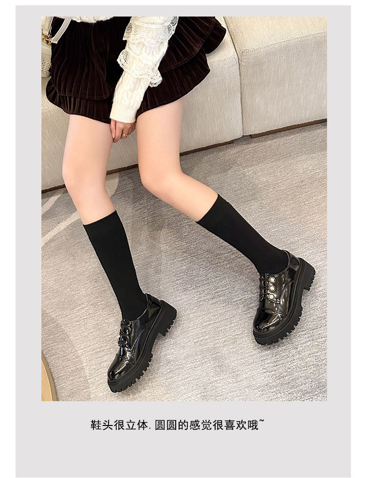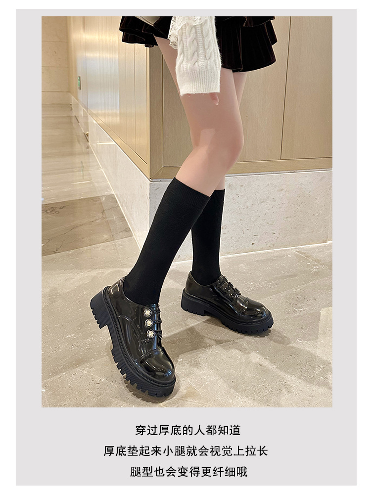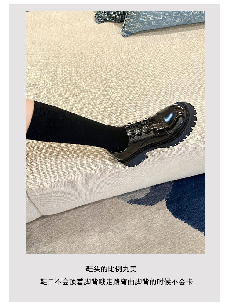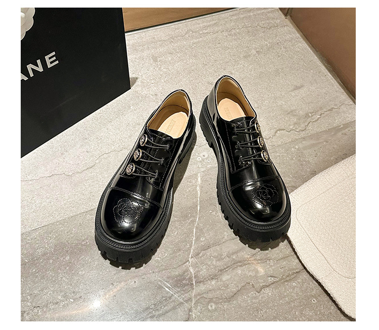 플랫폼 로프 두꺼운 바닥 로퍼 여성용 2023 가을 새로운 블랙 캐주얼 자수 레이스 업 영국 스타일 가죽 신발 단층 신발스토어 가기