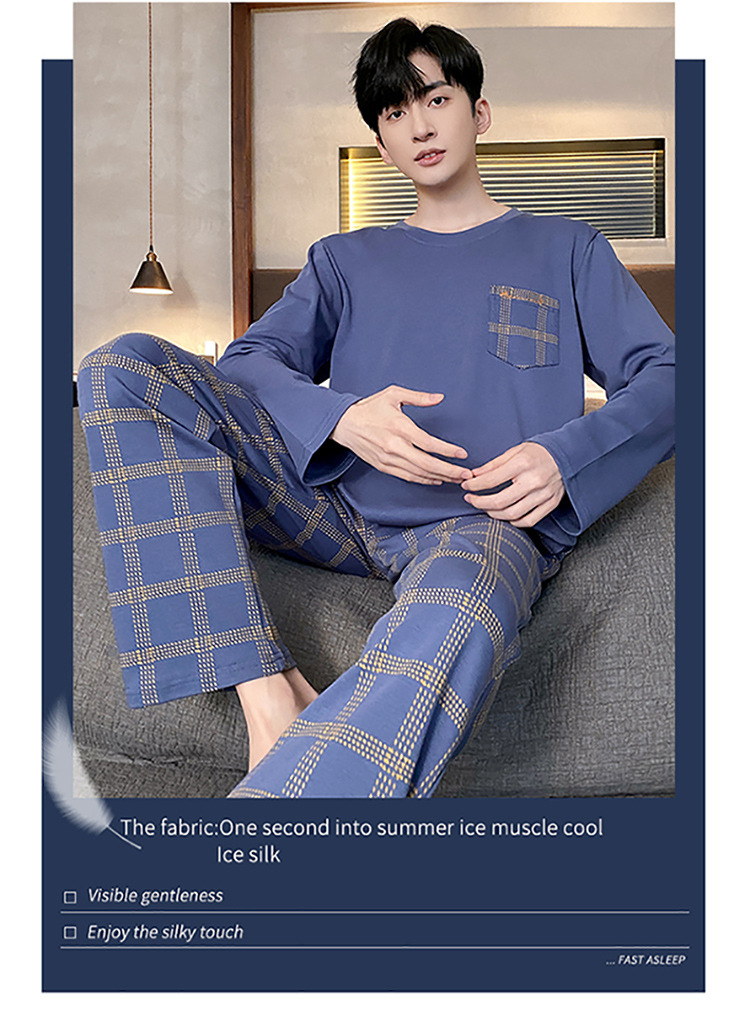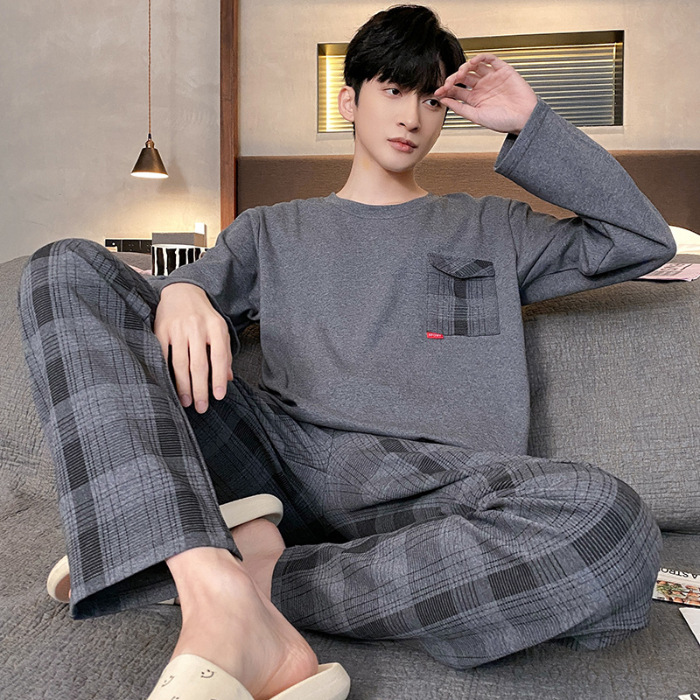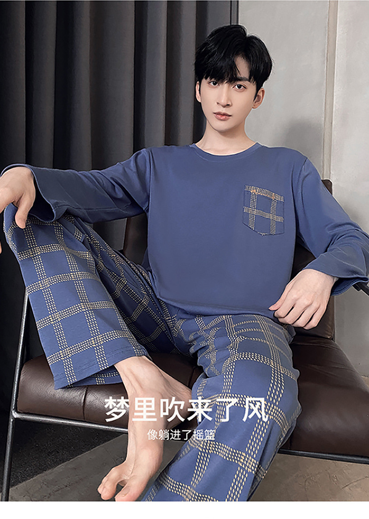 2023 새로운 남자의 잠옷 봄과 가을 캐주얼 긴 소매 바지 복장 느슨한 플러스 사이즈 가정 옷 투피스 세트스토어 가기