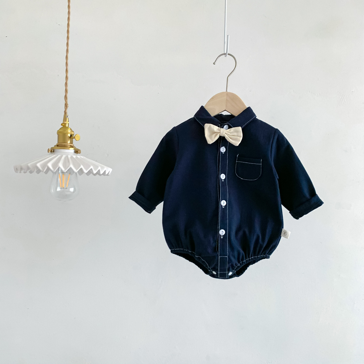 봄 신작 아기 소년 정장 점프 슈트 아기 신사 나비 넥타이 크롤링 슈트 신생아 100 일 된 옷스토어 가기