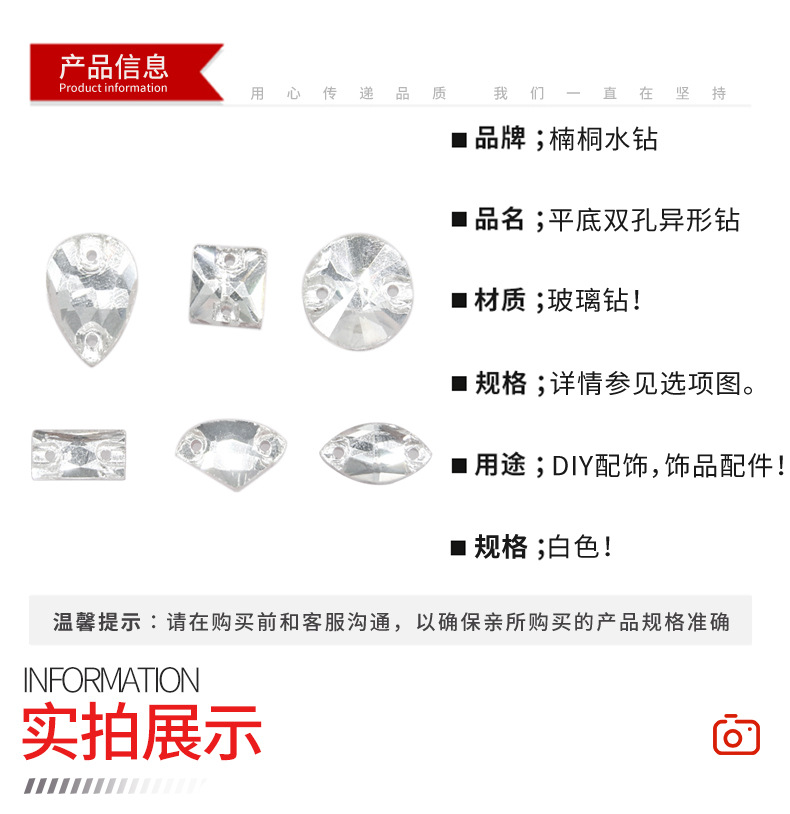 플랫 바닥 이중 구멍 기하학적 모양의 드릴 구멍 드릴/더블 구멍 보석 웨딩 원피스 액세서리 유리 손 재봉 돌 손 재봉 드릴스토어 가기