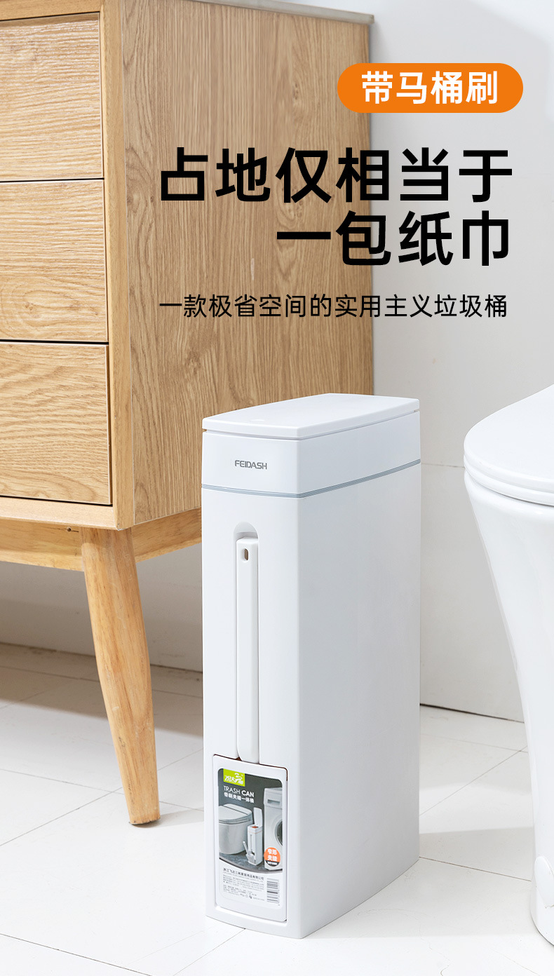 이중 욕실 쓰레기통, 변기솔 포함, 좁은 틈에 설치 가능한 푸시 버튼 쓰레기통, 창의적이고 심플한 디자인의 가정용 쓰레기통