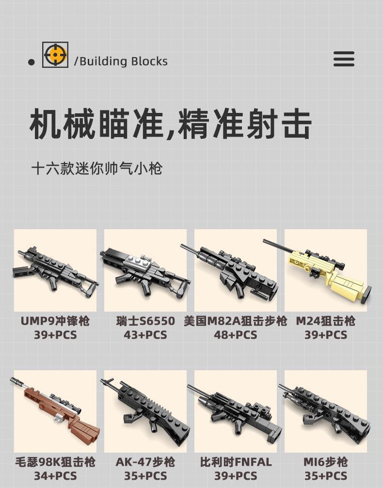 Kaizhi 레고 소년의 빌딩 블록과 호환 미니 치킨 16-in -1 Mauser 98K 빌딩 블록 총 모델 조립 완구스토어 가기