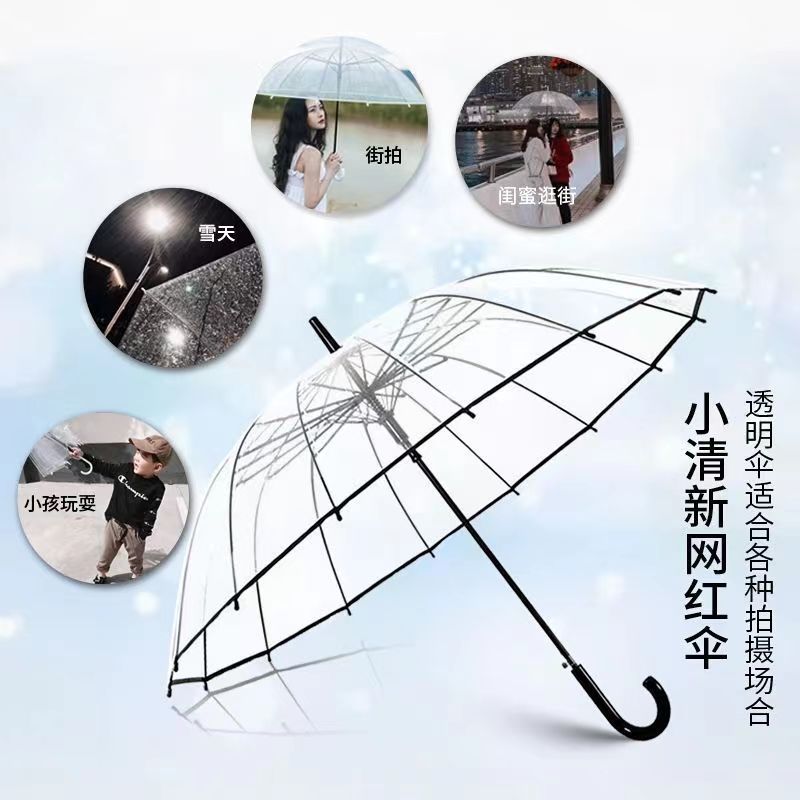 투명 우산 남성과 여성 인터넷 유명인 귀여운 반자동 스트레이트 핸들 사진 작은 신선한 차양 맑은 우산 젖빛 우산