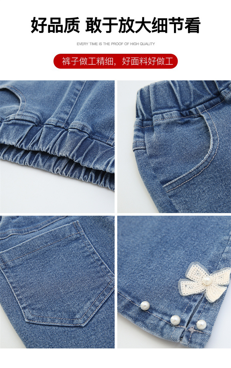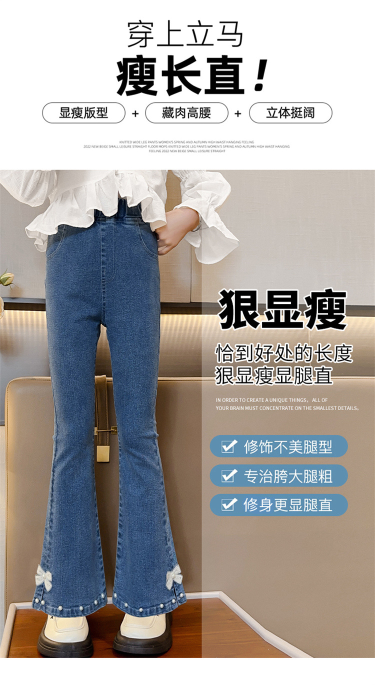 어린이 플레어 팬츠 가을과 겨울 2023 새로운 한국 스타일 기모 진주 보우 스플릿 팬츠 여아 청바지스토어 가기