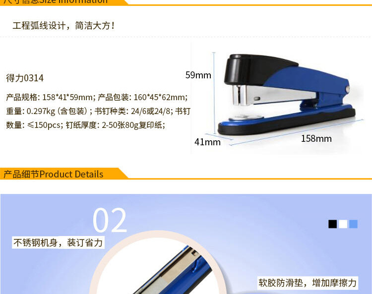 델리 0314 스테이플러 스테이플러 금속 스테이플러 사무실 문구 용품 대형 두꺼운 스테이플러스토어 가기