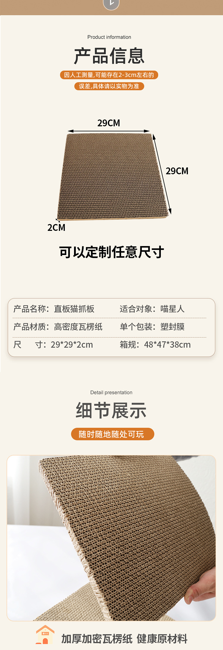 암호화 된 두꺼운 골판지 비 흘리기 자기 즐거움 스트레이트 보드 고양이 용품 앵무새 작은 애완 동물 햄스터 발톱 연삭 고양이 긁는 보드 도매