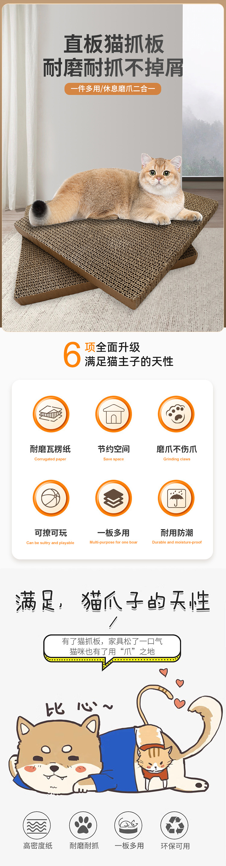암호화 된 두꺼운 골판지 비 흘리기 자기 즐거움 스트레이트 보드 고양이 용품 앵무새 작은 애완 동물 햄스터 발톱 연삭 고양이 긁는 보드 도매스토어 가기