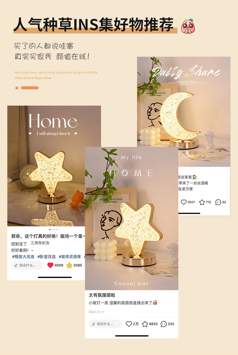 맞춤형 침대 나이트 라이트 침실 장식 테이블 램프 소녀의 하트 스타 문 선물 램프 터치 충전식 야간 조명스토어 가기