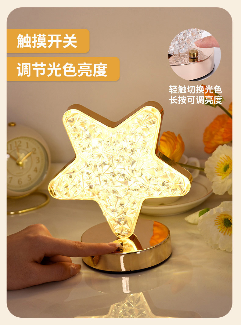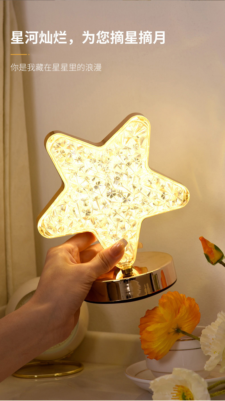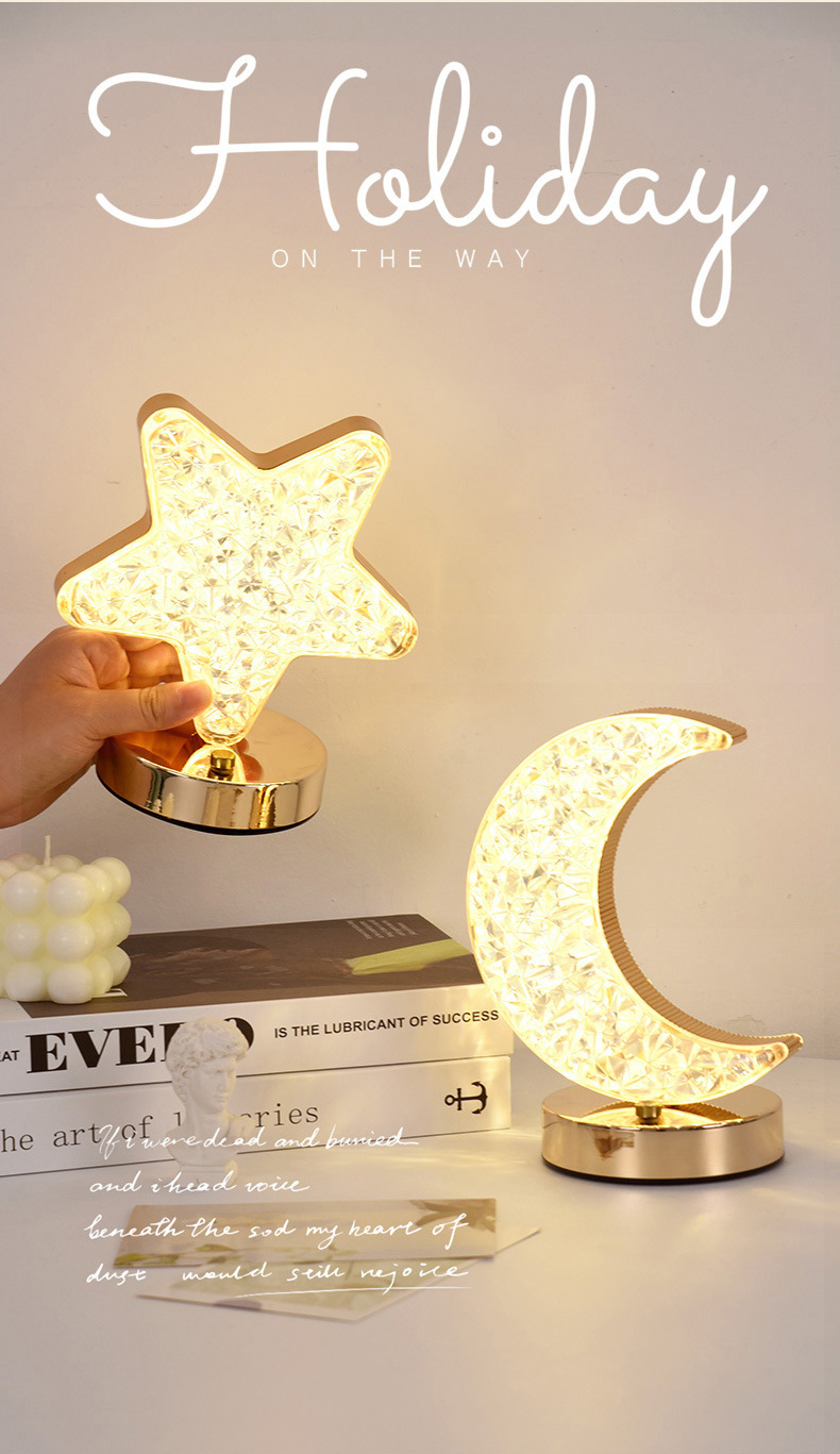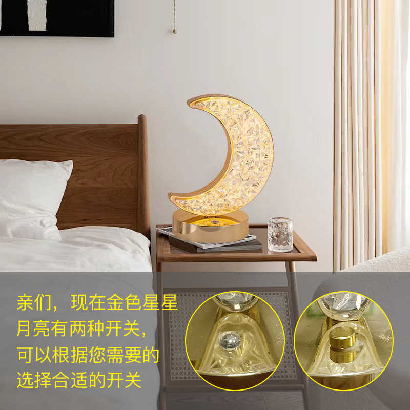맞춤형 침대 나이트 라이트 침실 장식 테이블 램프 소녀의 하트 스타 문 선물 램프 터치 충전식 야간 조명