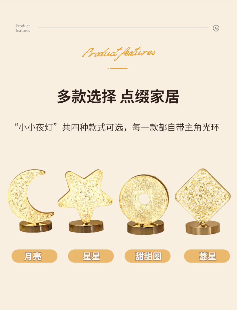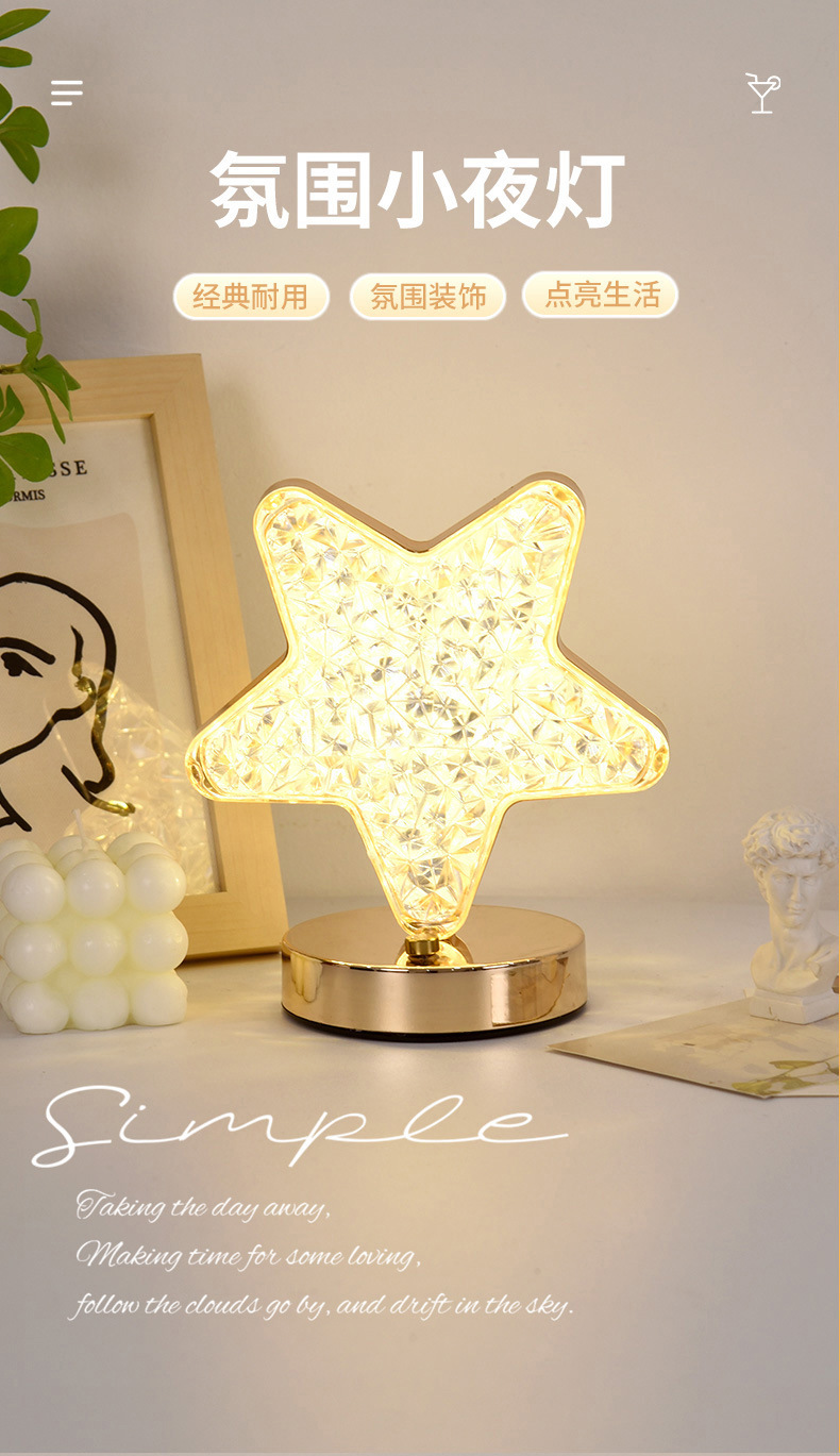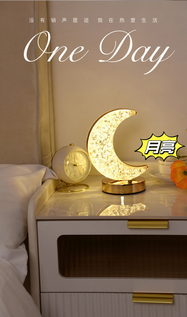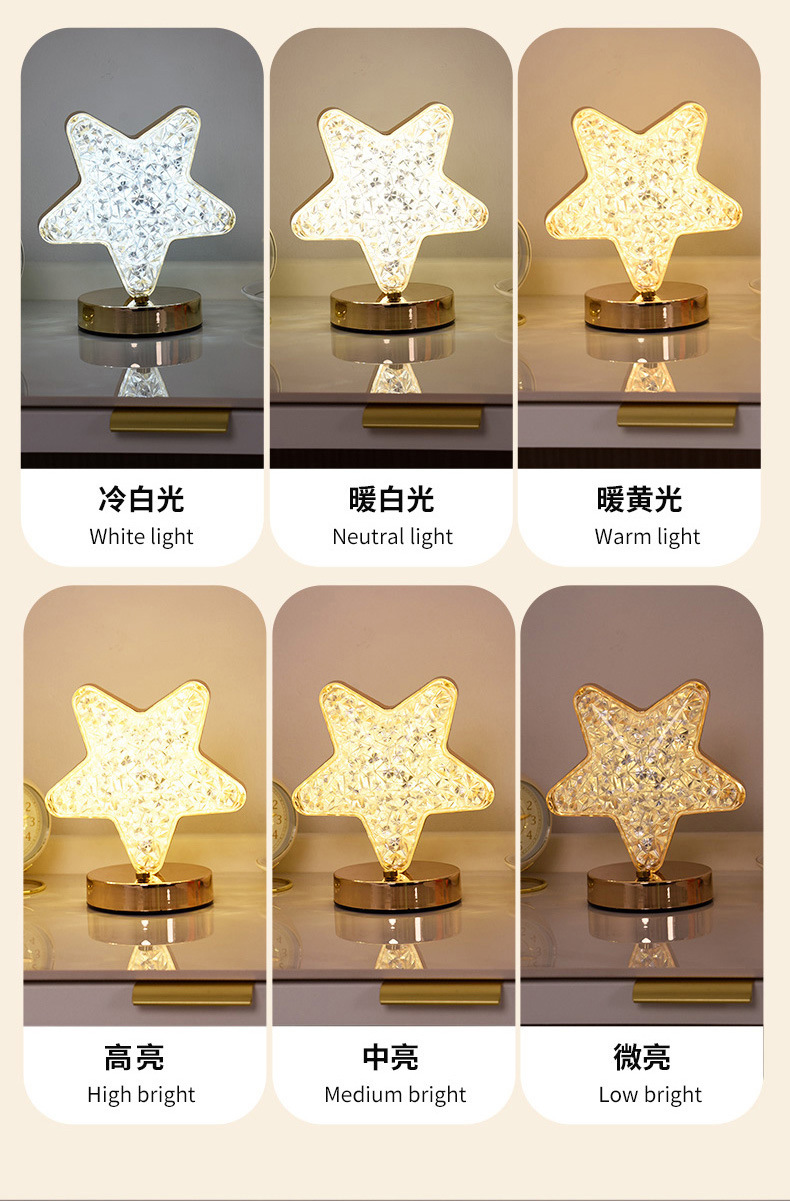 맞춤형 침대 나이트 라이트 침실 장식 테이블 램프 소녀의 하트 스타 문 선물 램프 터치 충전식 야간 조명