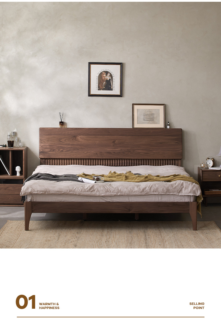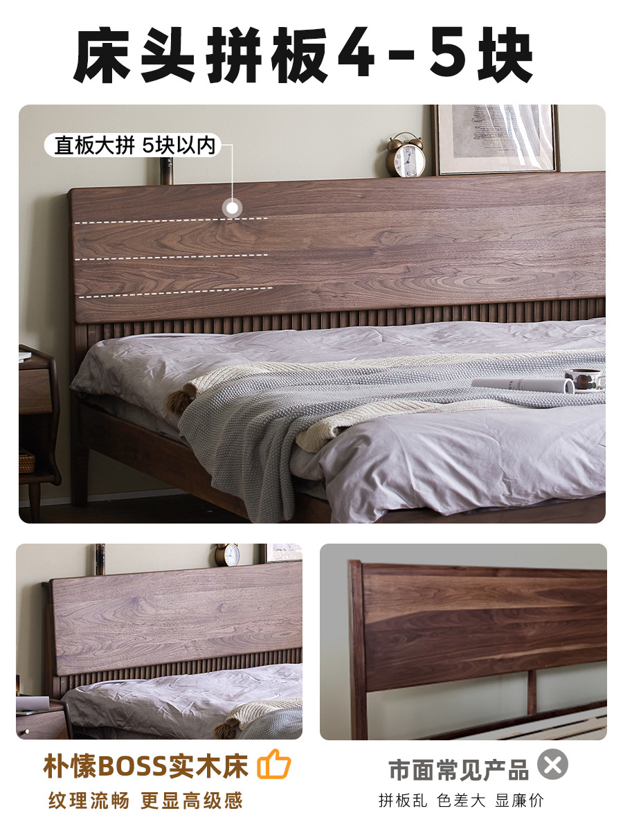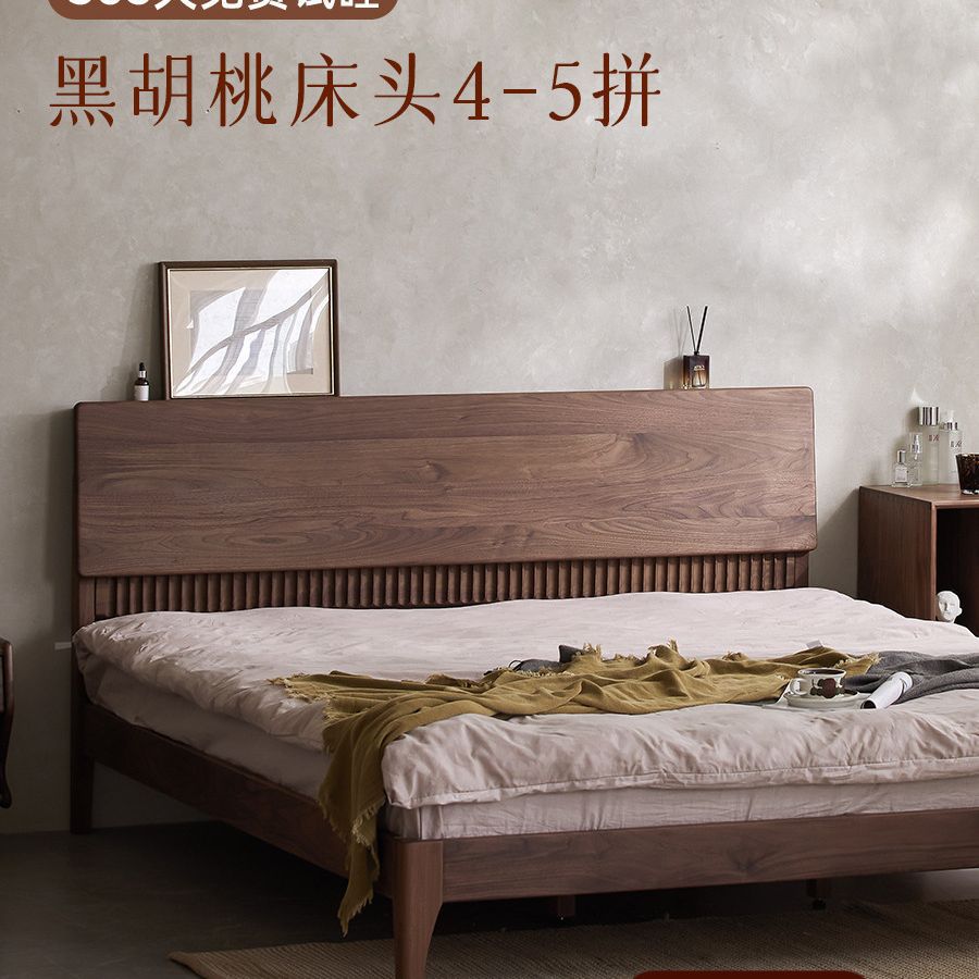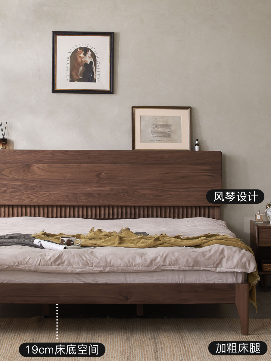 북유럽 원목 침대 북미 검은 호두 가구 마스터 침실 체리 우드 1.8 더블 침대 로그 복고풍 침대스토어 가기