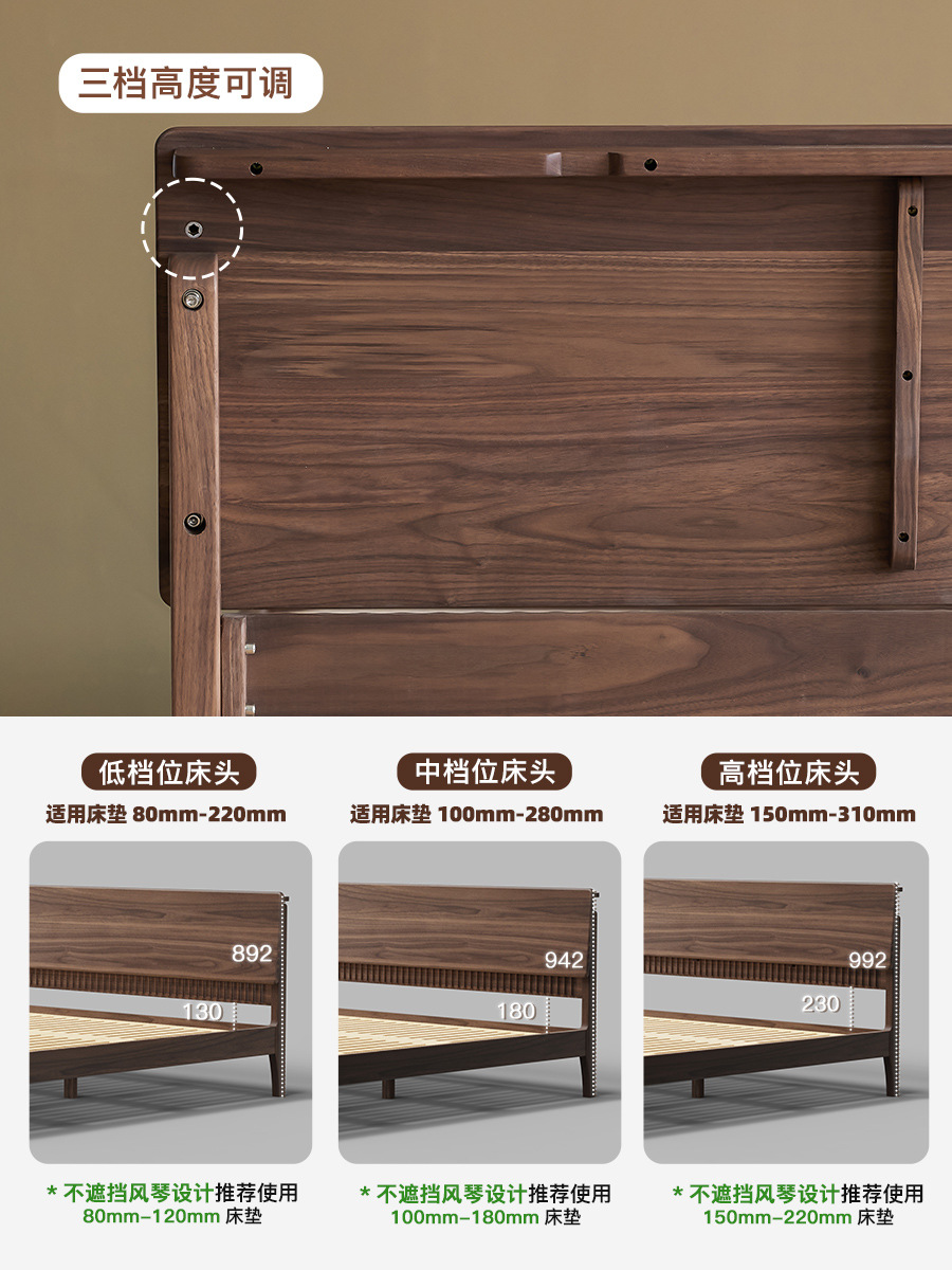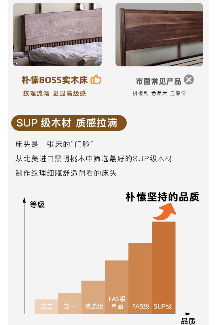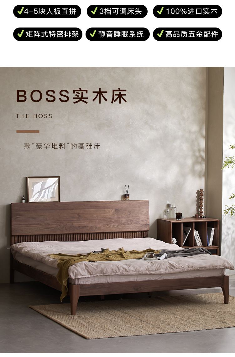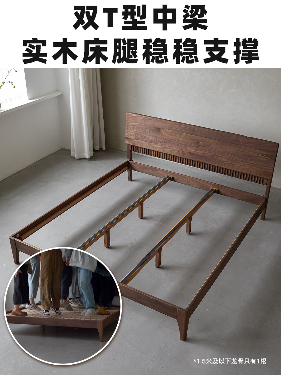 북유럽 원목 침대 북미 검은 호두 가구 마스터 침실 체리 우드 1.8 더블 침대 로그 복고풍 침대스토어 가기