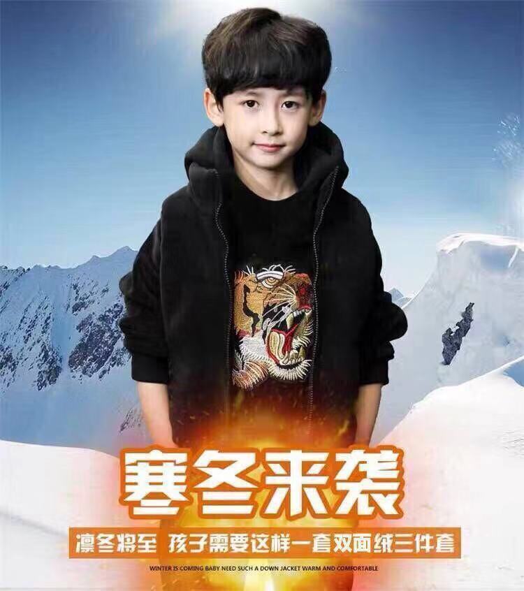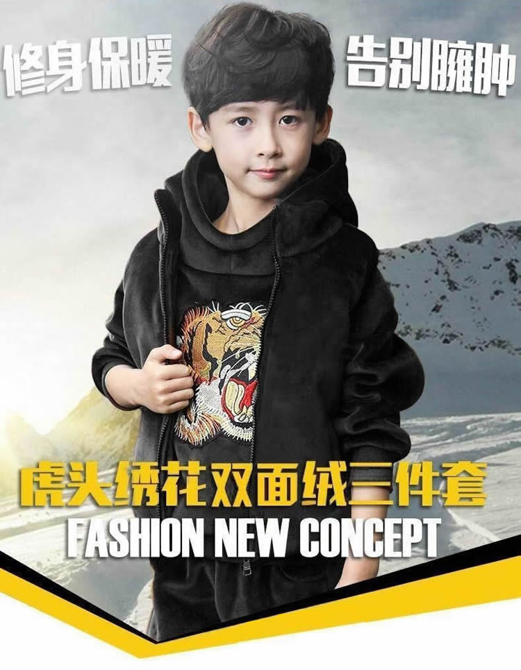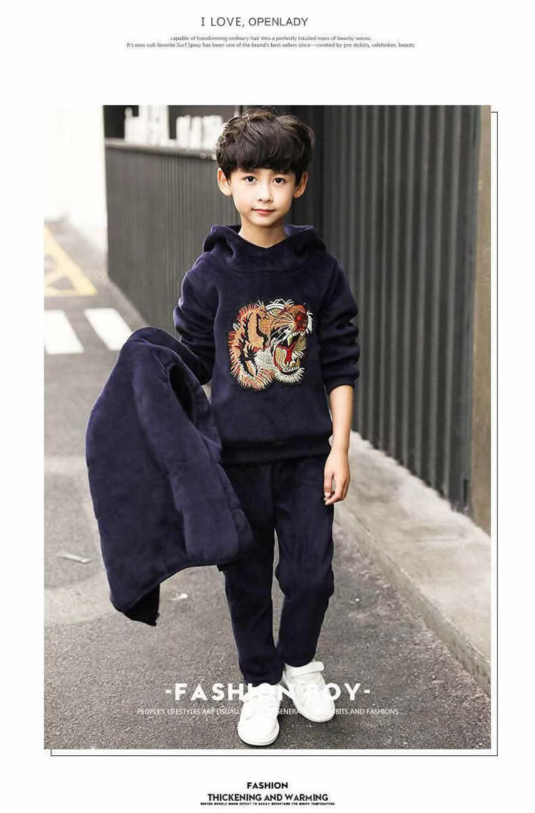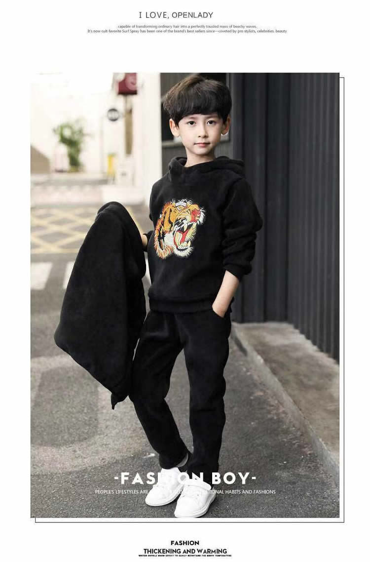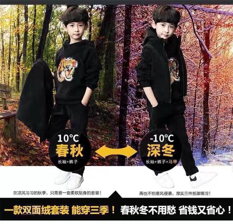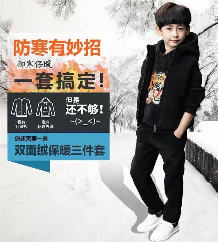 남자들의 가을과 겨울 세트 2024 새 기모 두꺼운 스웨터 3 피스 세트 한국식 양면 양털 어린이 세트스토어 가기
