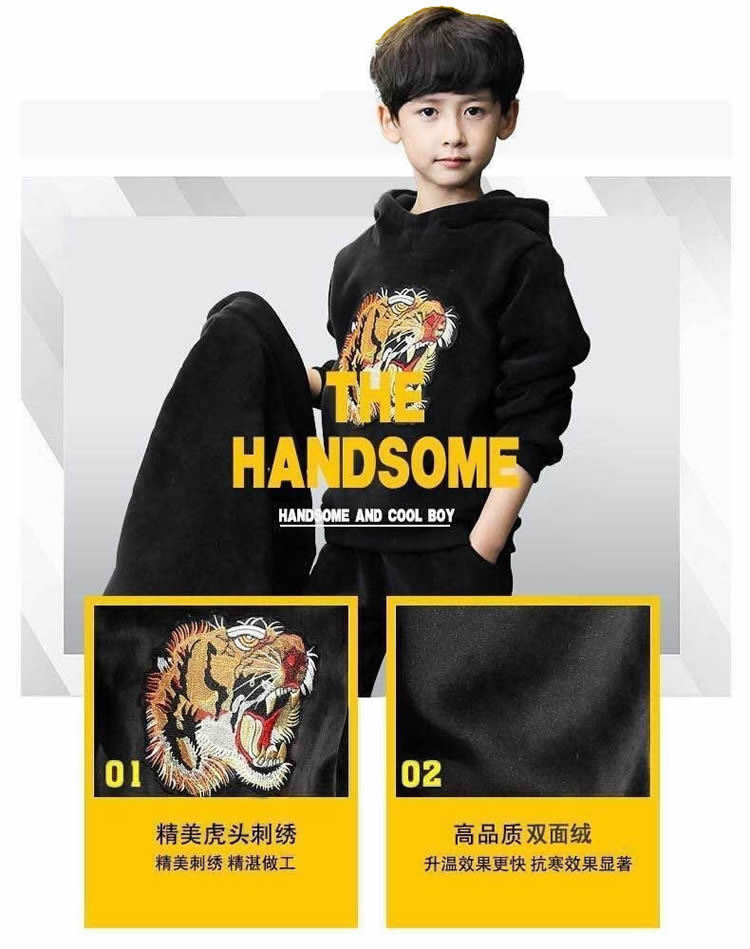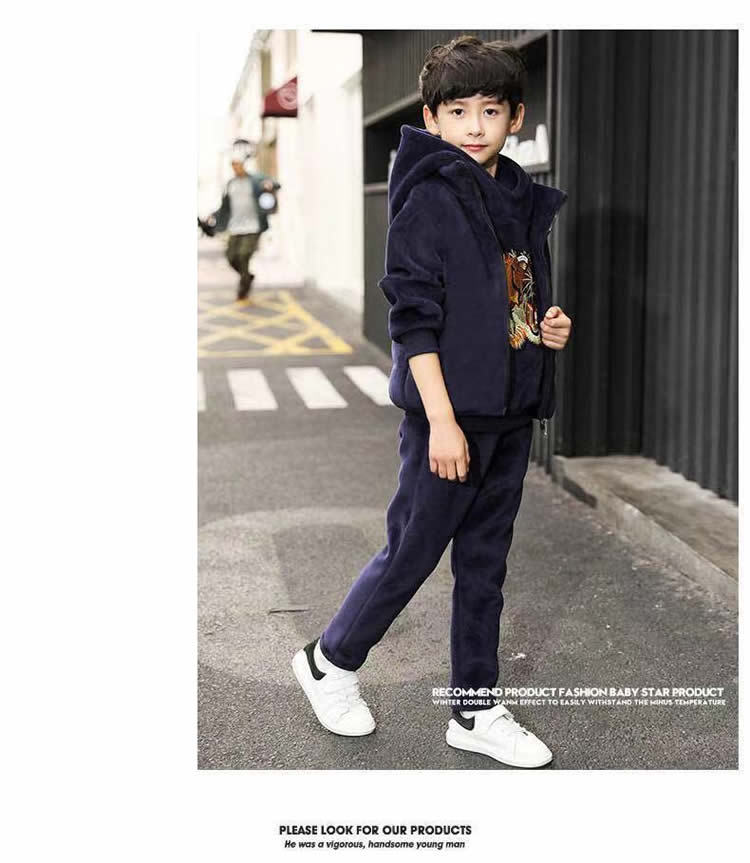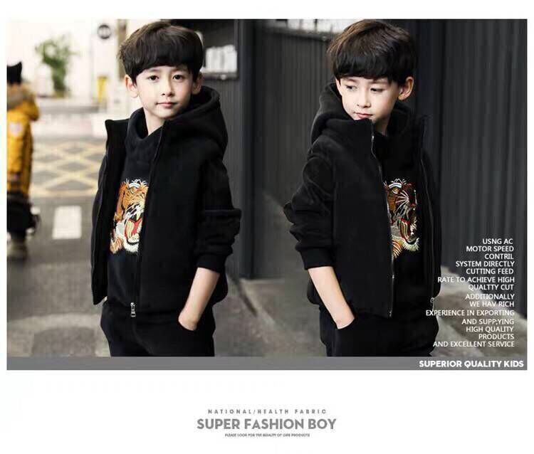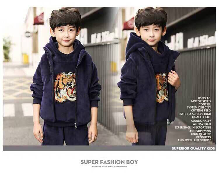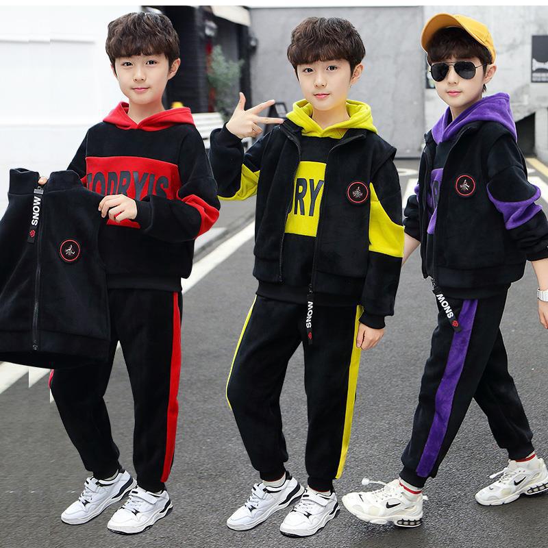 남자들의 가을과 겨울 세트 2024 새 기모 두꺼운 스웨터 3 피스 세트 한국식 양면 양털 어린이 세트