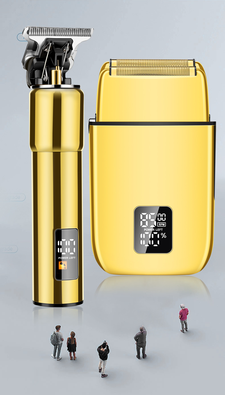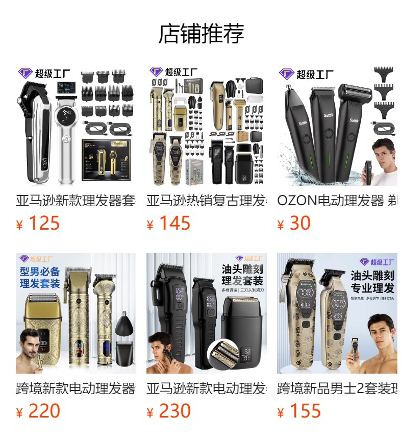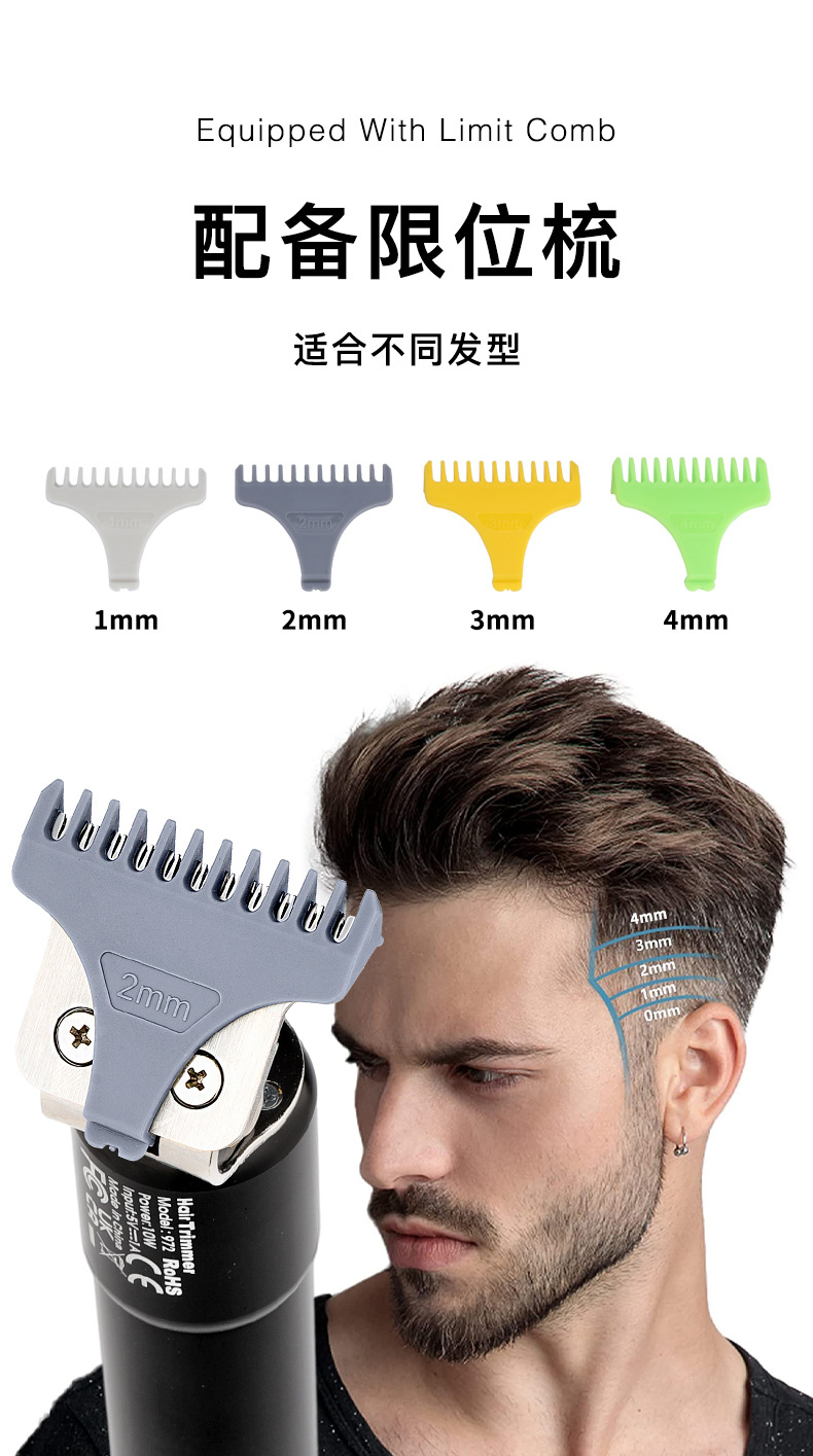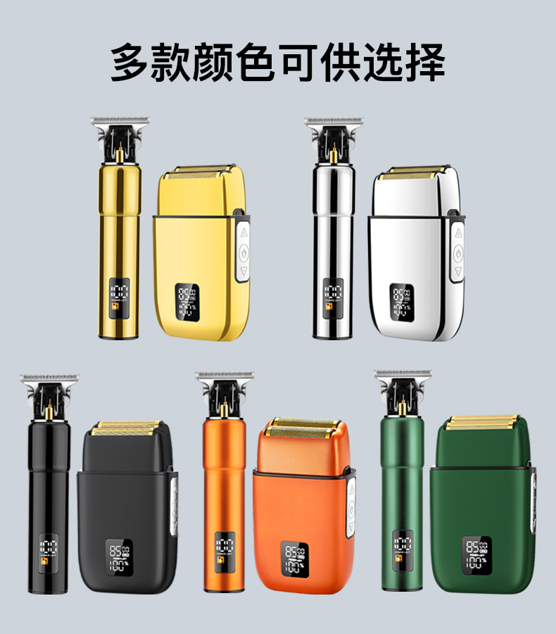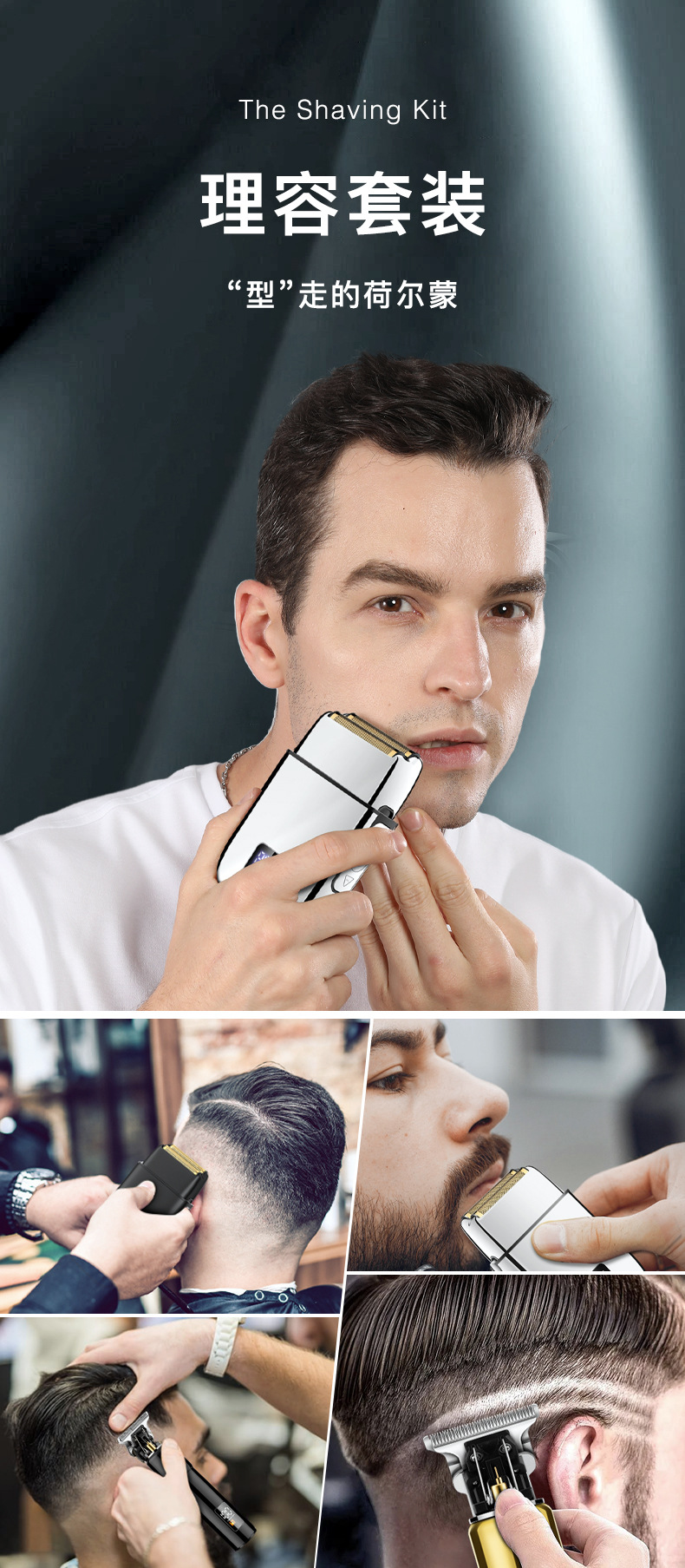 包含配件:理发器+剃须刀+EVA收纳包+充电线*2+限位梳*4(1.2.3.4mm)+梳子+剃须刀刀头保护盖+理发器防尘盖+英文说明书.