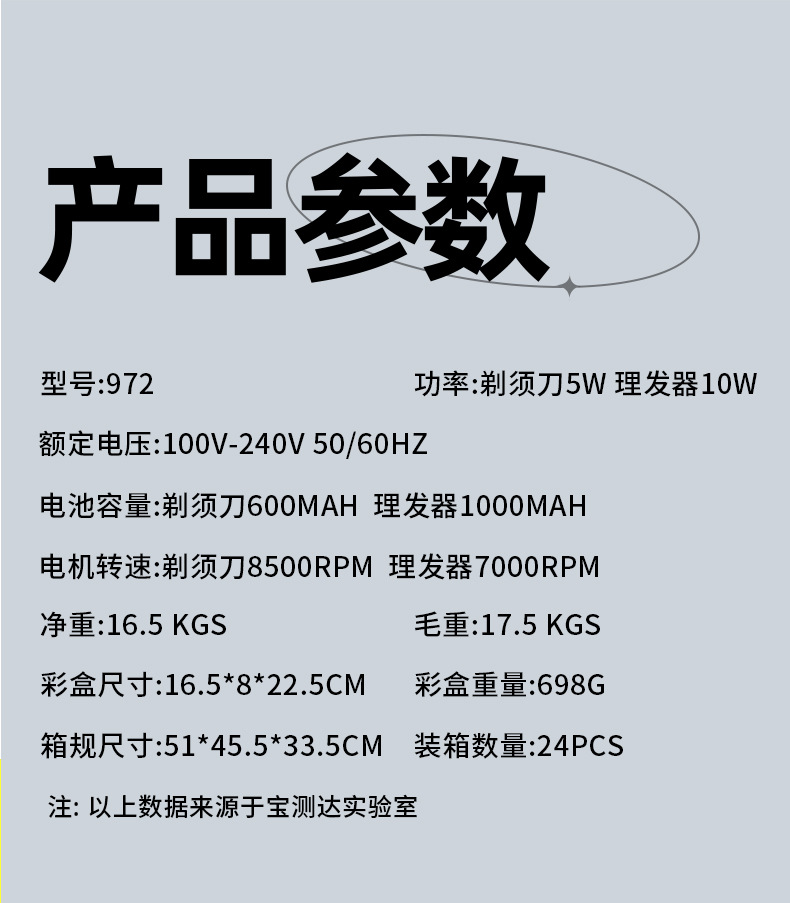 电压功率:110-240V 50/60Hz 理发器10W/剃须刀5W;