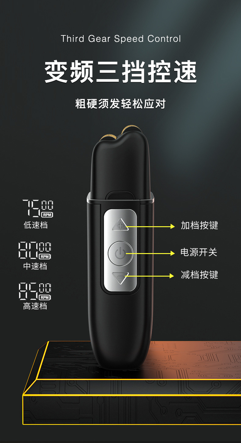 电机转速:理发器7000PRM/剃须刀(3档:7500-8000-8500PRM)