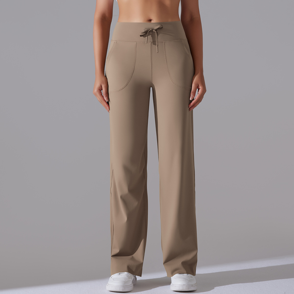 알몸 새 허리 졸라매는 끈 와이드 레그 팬츠 하이 웨이스트 바디 쉐이핑 요가 세트 양측 대형 포켓 스포츠웨어 피트니스 바지스토어 가기