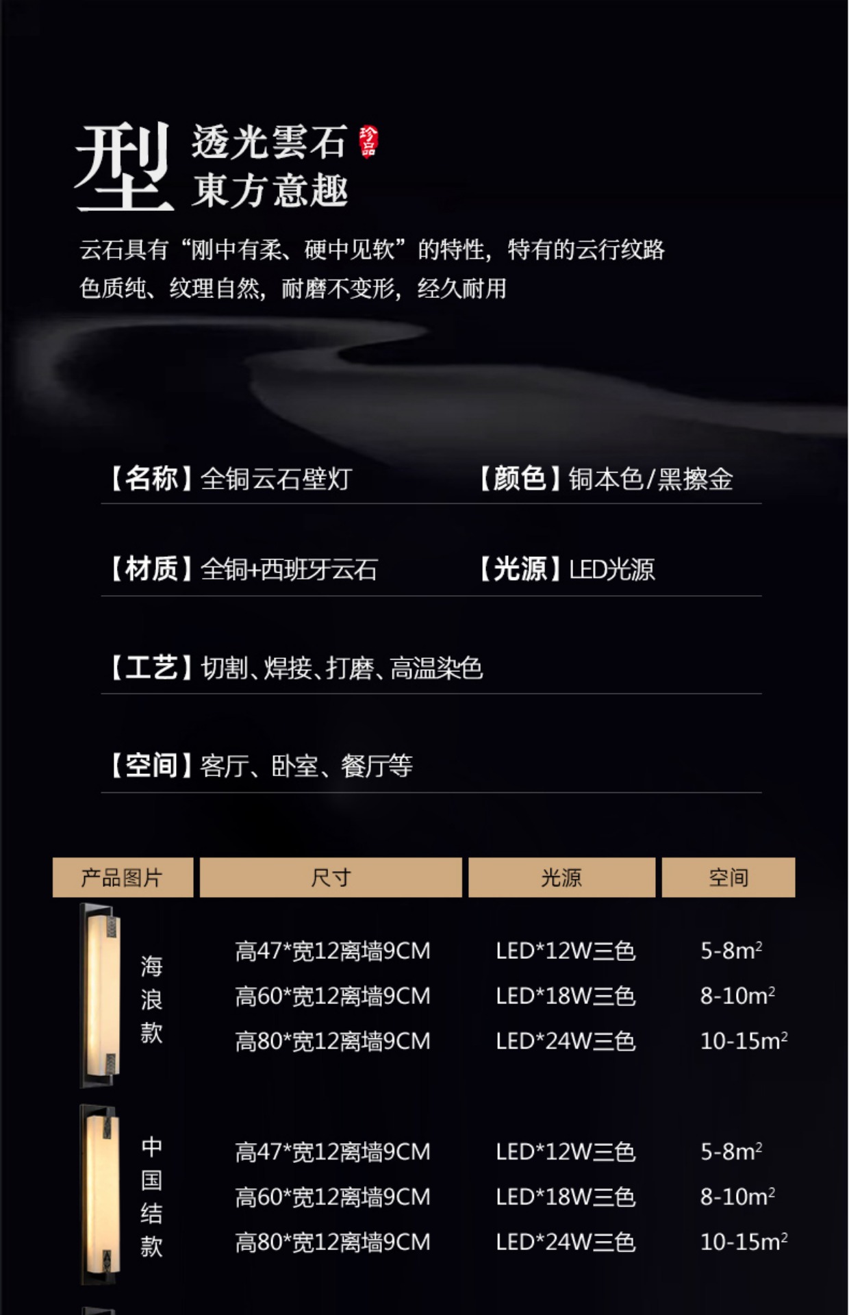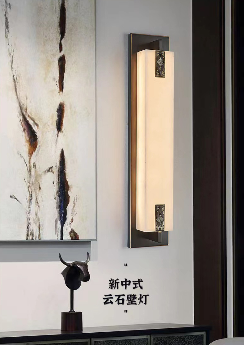 새로운 새로운 중국어 모든 구리 대리석 침실 머리맡 거실 배경 벽 복고풍 빌라 계단 야외 방수 벽 램프스토어 가기