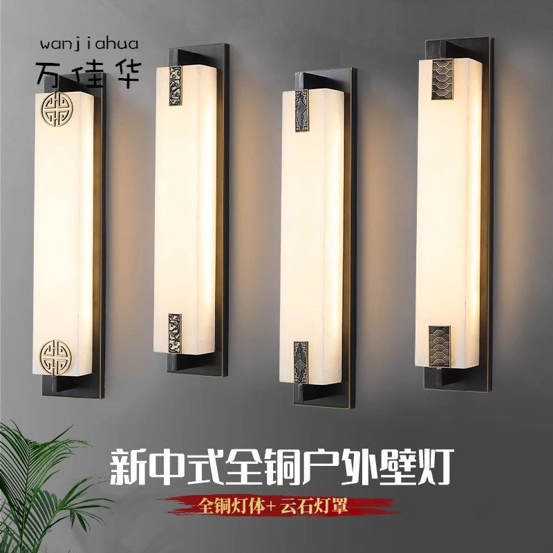 새로운 새로운 중국어 모든 구리 대리석 침실 머리맡 거실 배경 벽 복고풍 빌라 계단 야외 방수 벽 램프