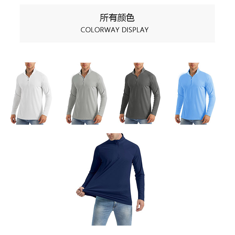 국경을 넘는 새로운 아마존 유럽과 미국 남성 긴팔 속건성 스포츠 러닝 풀오버 하프 지퍼 솔리드 컬러 통기성 티셔츠