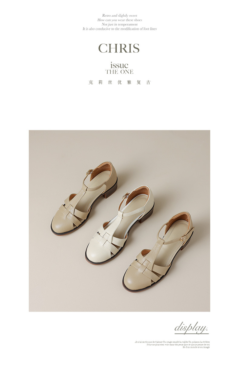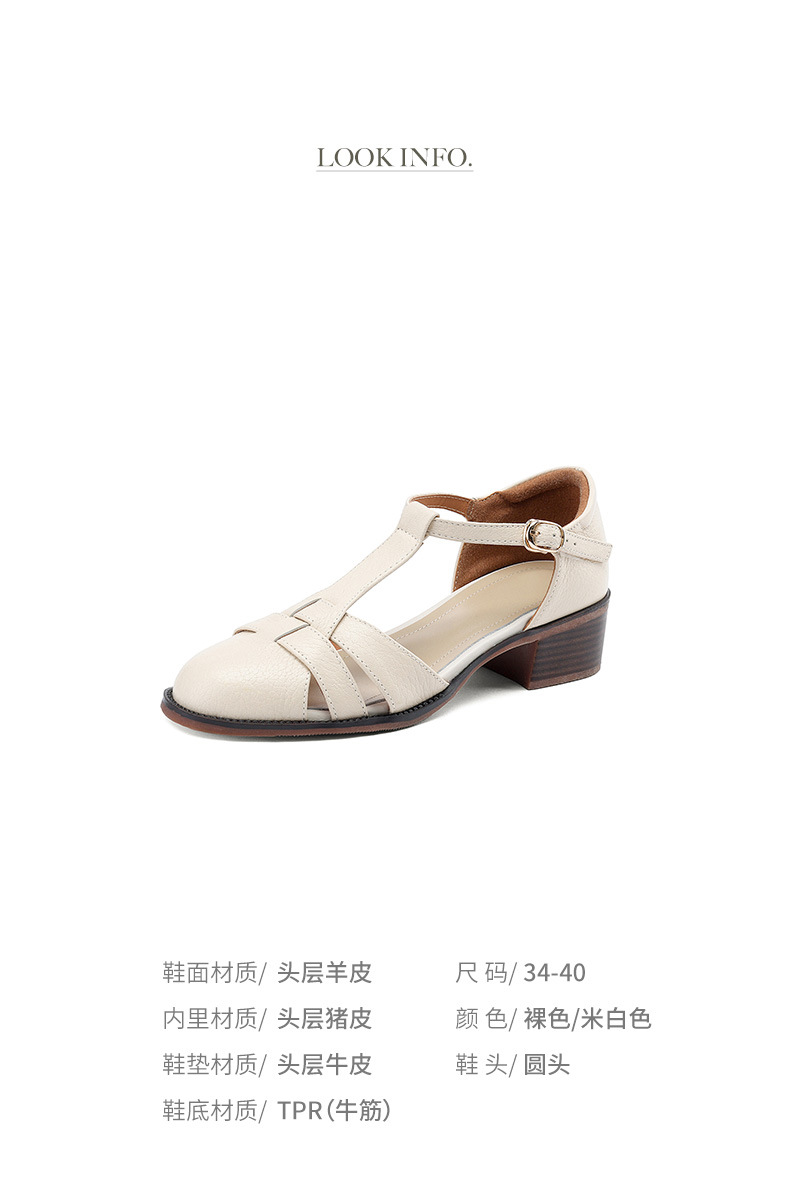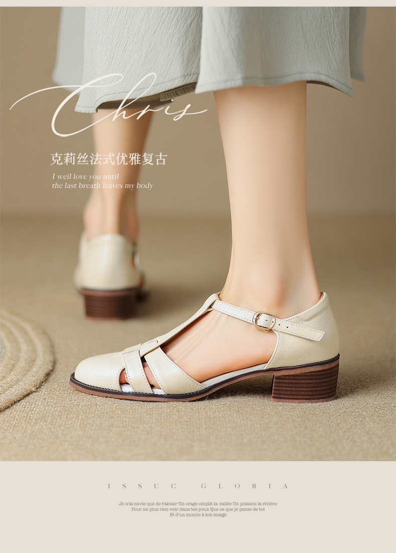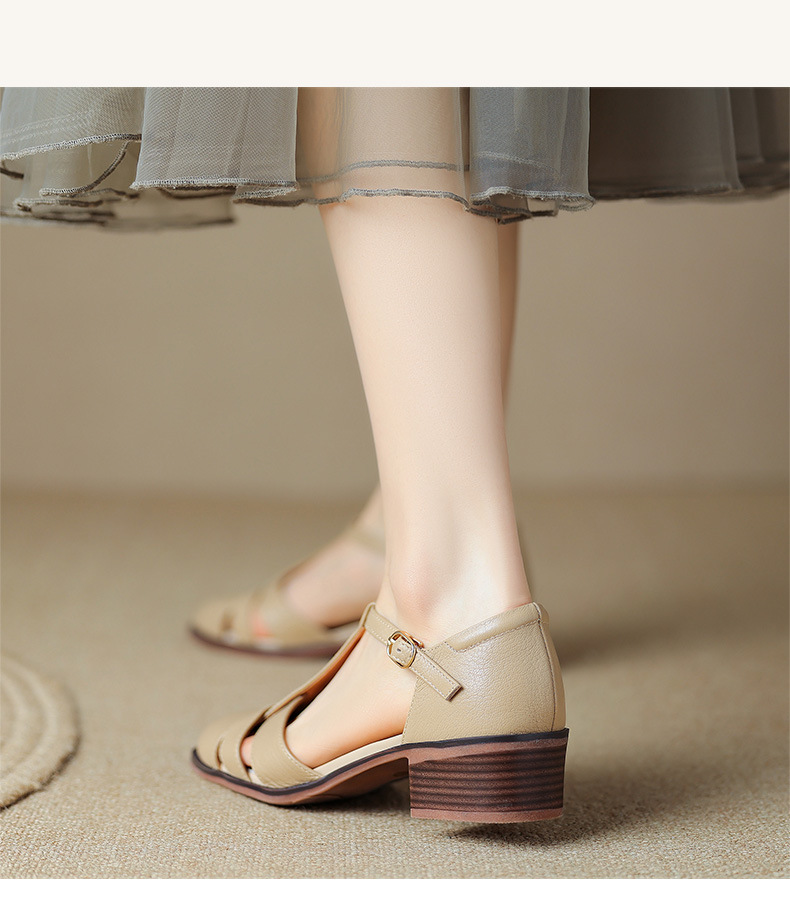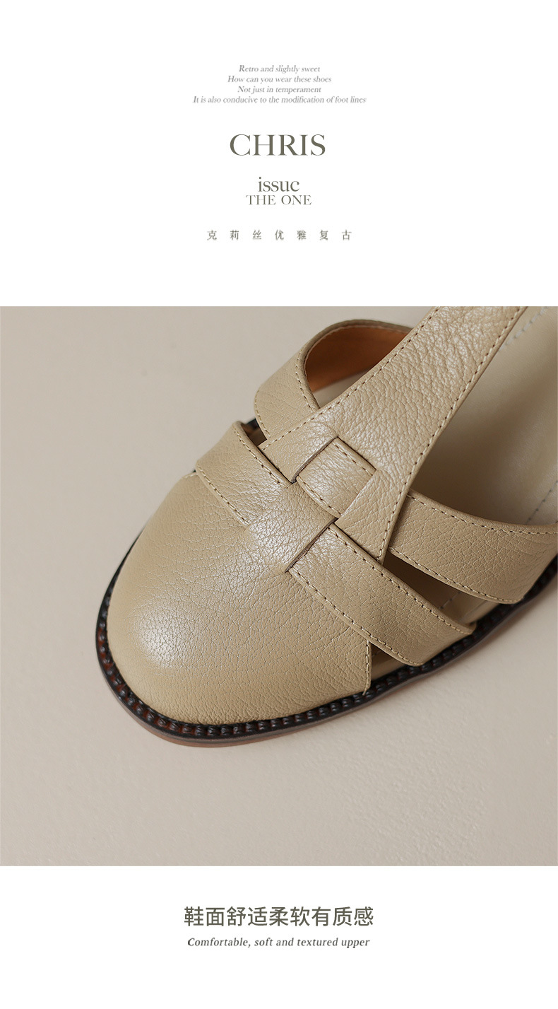 사슴과 숲 레트로 정품 가죽 발가락 로마 샌들 여자의 두꺼운 굽 2023 여름 새로운 중공 짠 돼지 케이지 신발스토어 가기