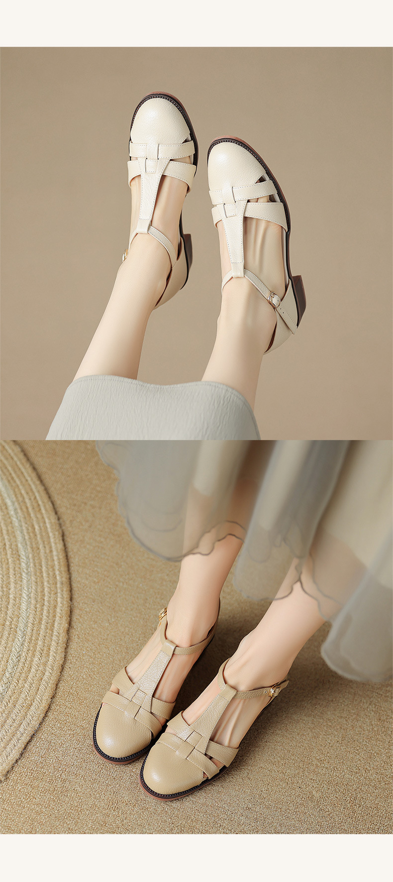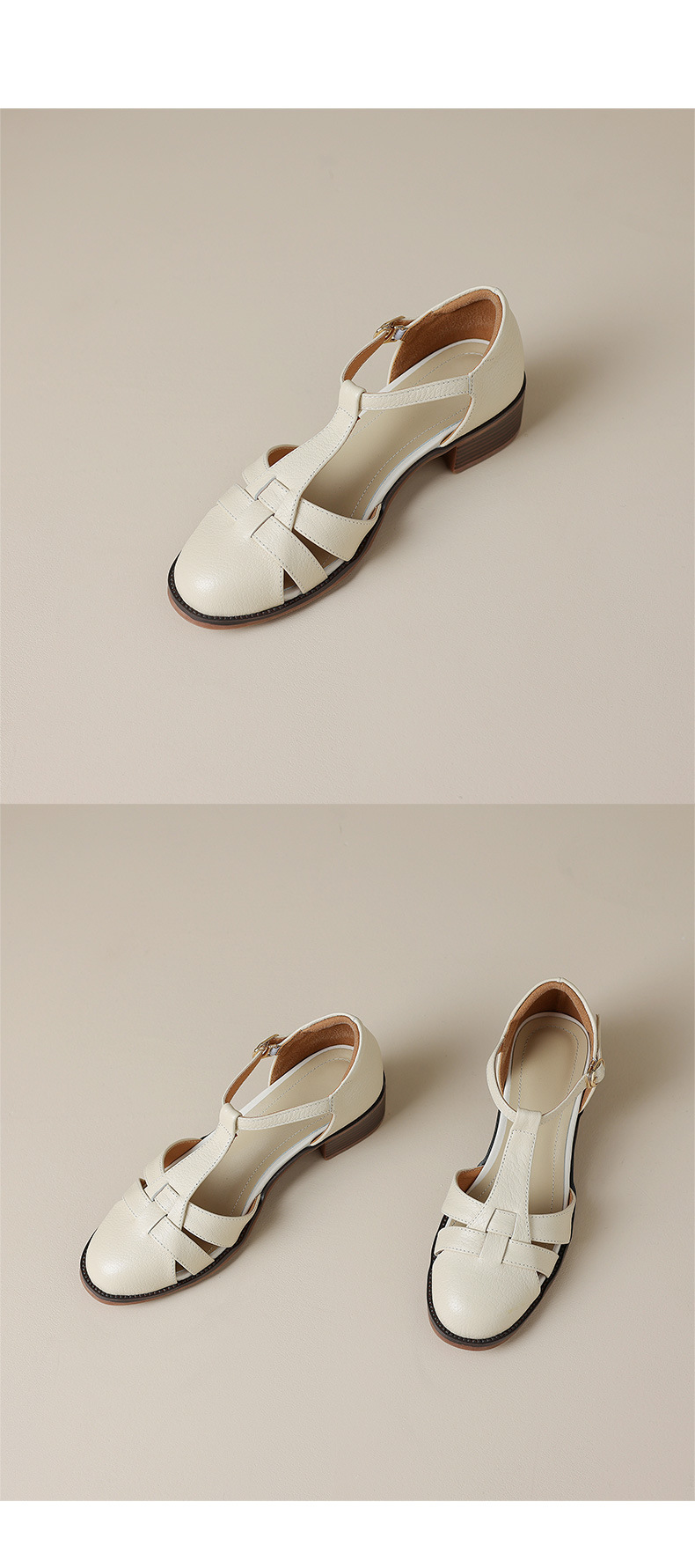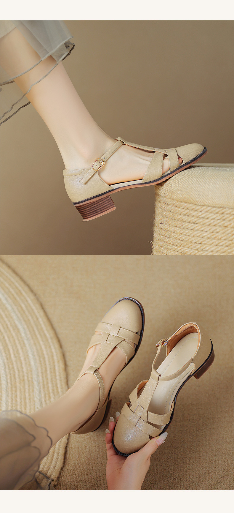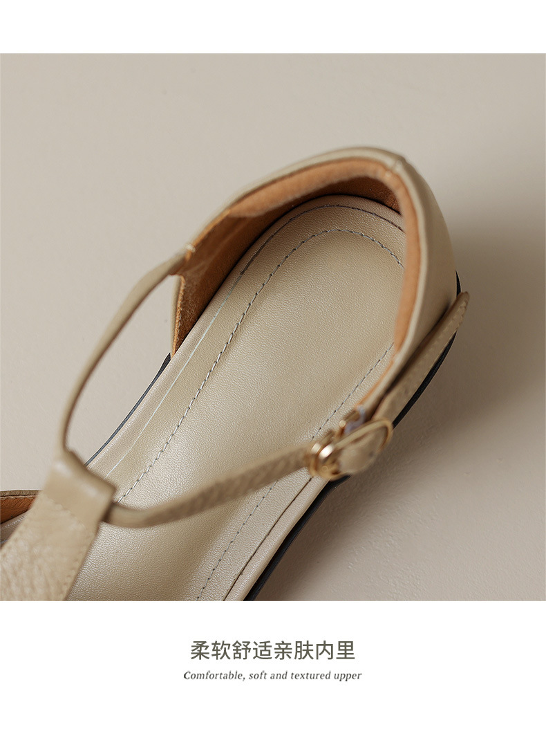 사슴과 숲 레트로 정품 가죽 발가락 로마 샌들 여자의 두꺼운 굽 2023 여름 새로운 중공 짠 돼지 케이지 신발스토어 가기