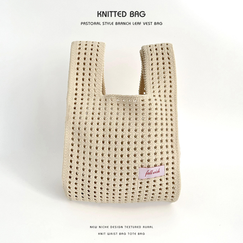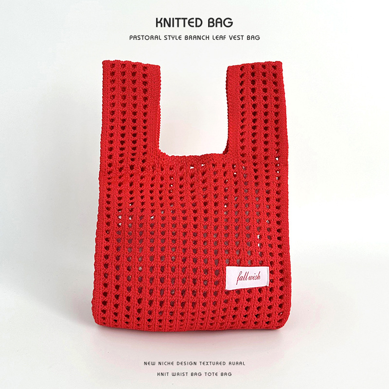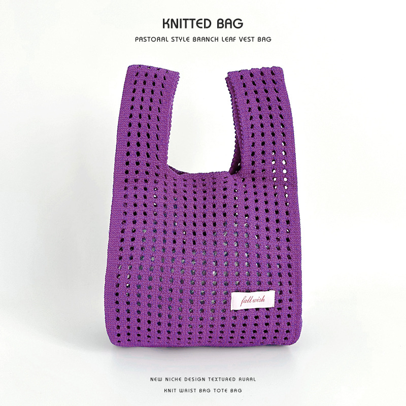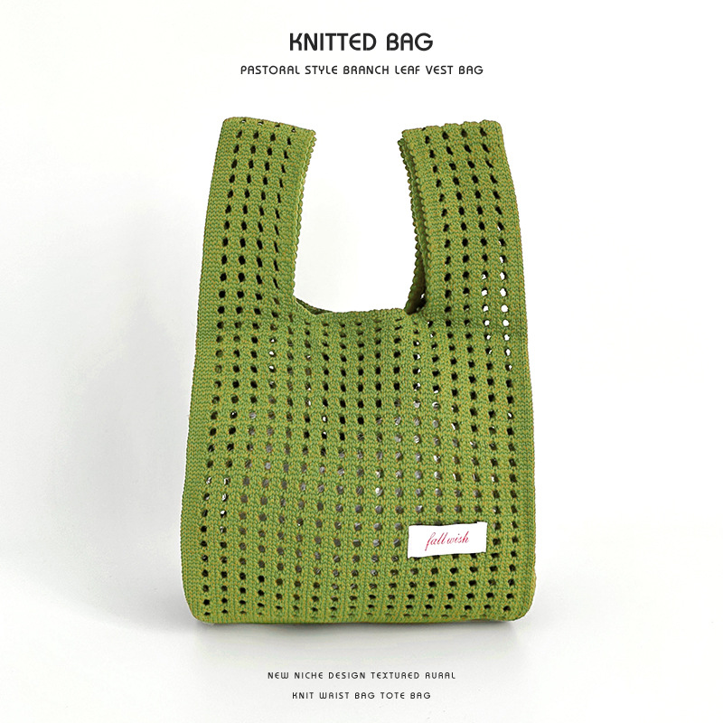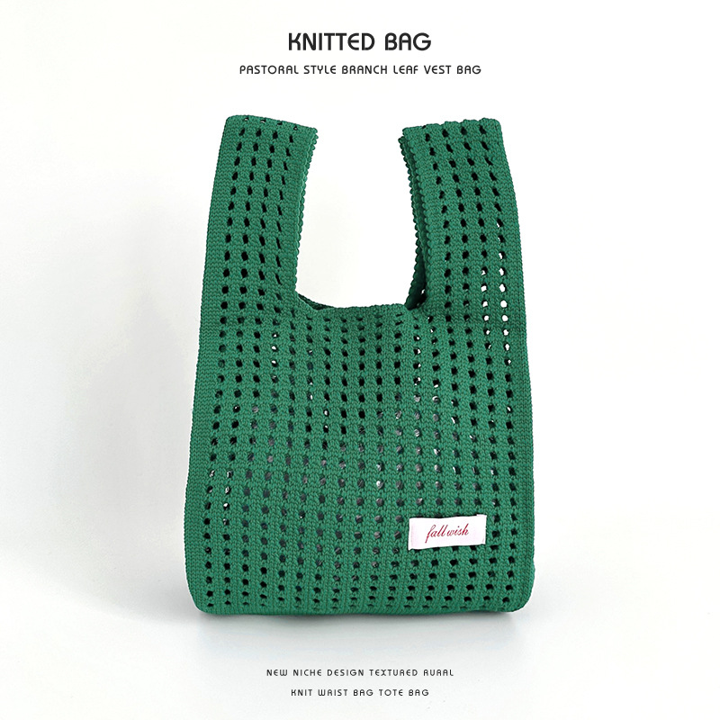심플 솔리드 컬러 니트 중공 숄더 핸드백 핸드백 조커 캐주얼 대용량 토트백 도매 한국어 버전스토어 가기
